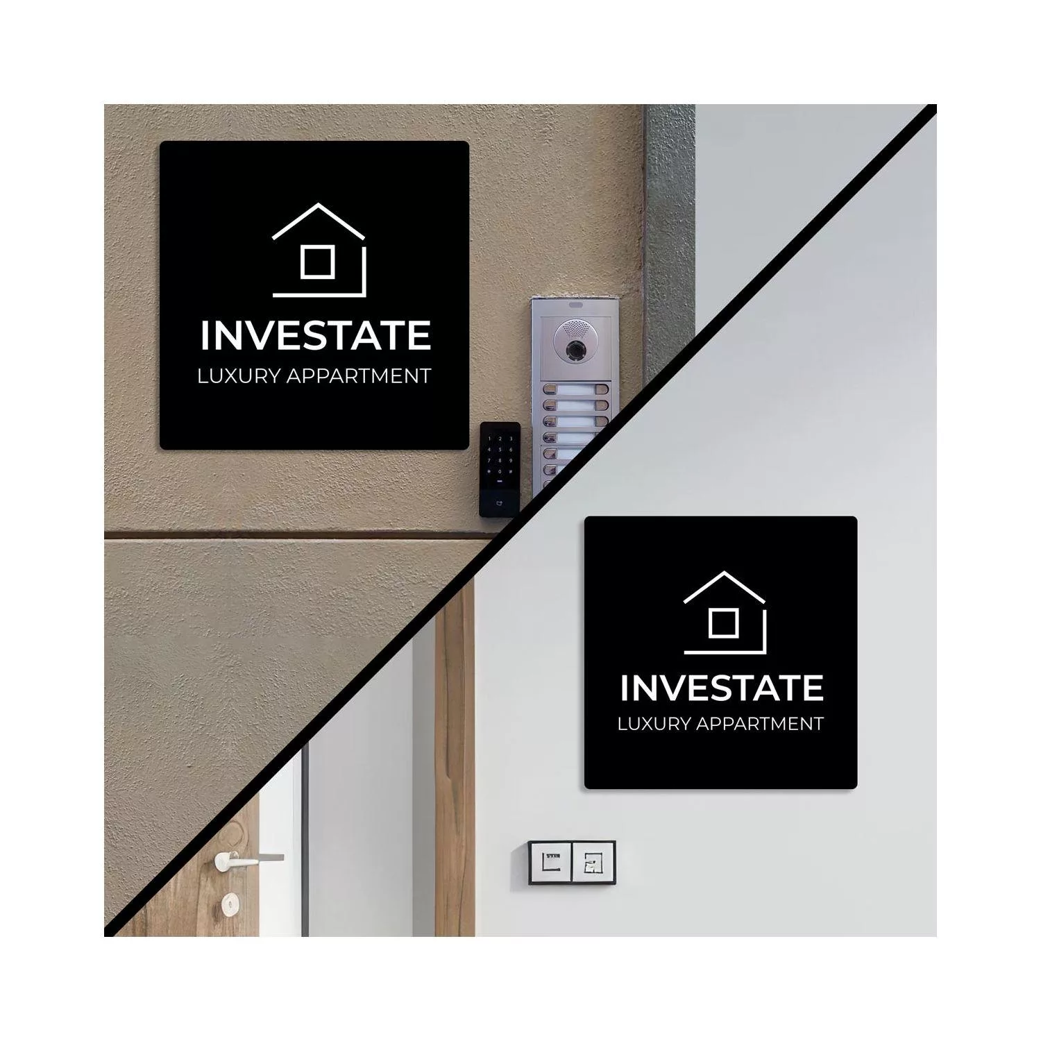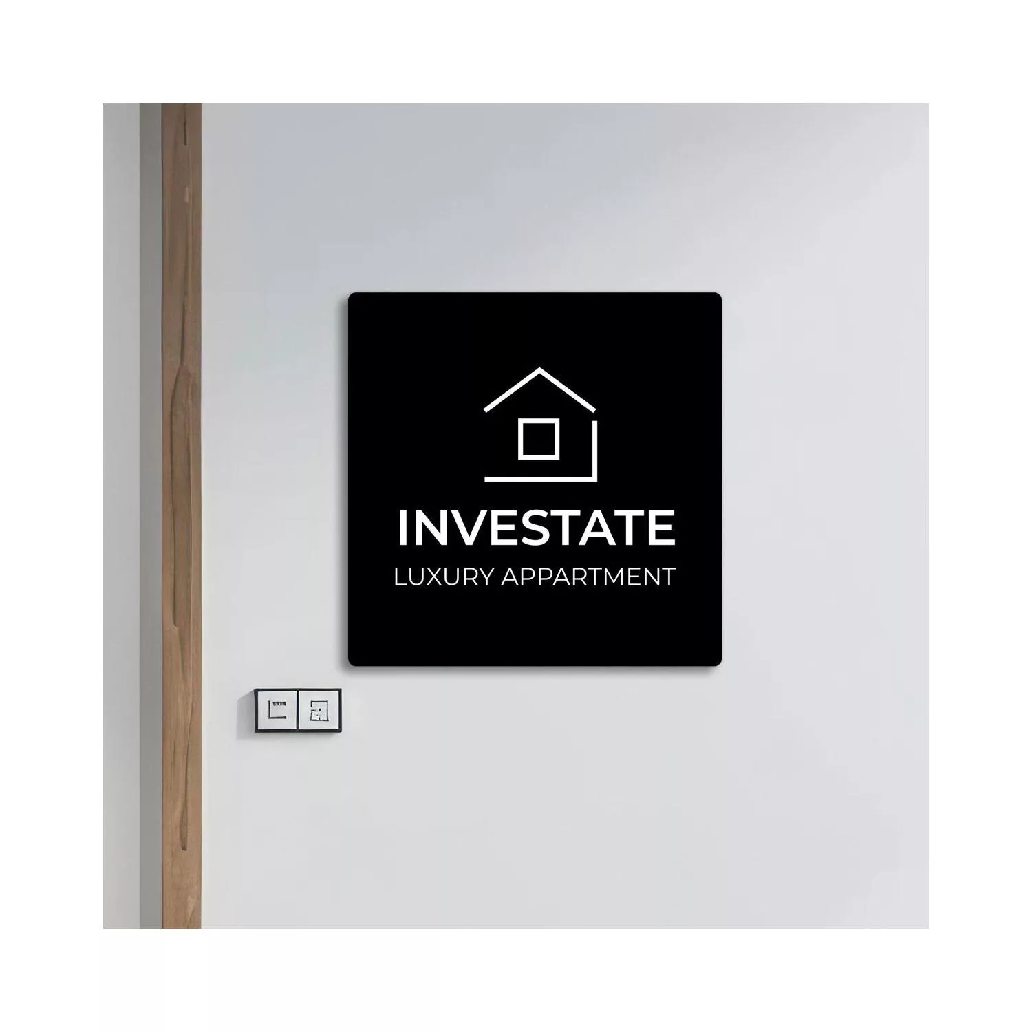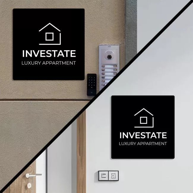 Πινακίδα εισόδου, μαύρο plexiglass, εκτύπωση λευκό ή χρώμα, τετράγωνη