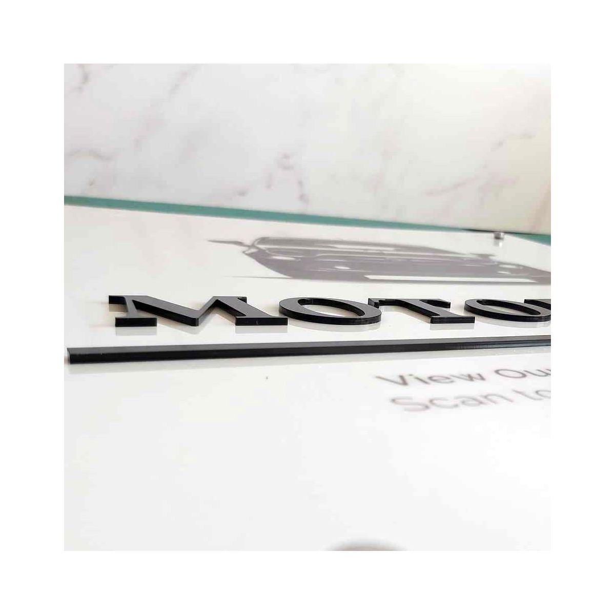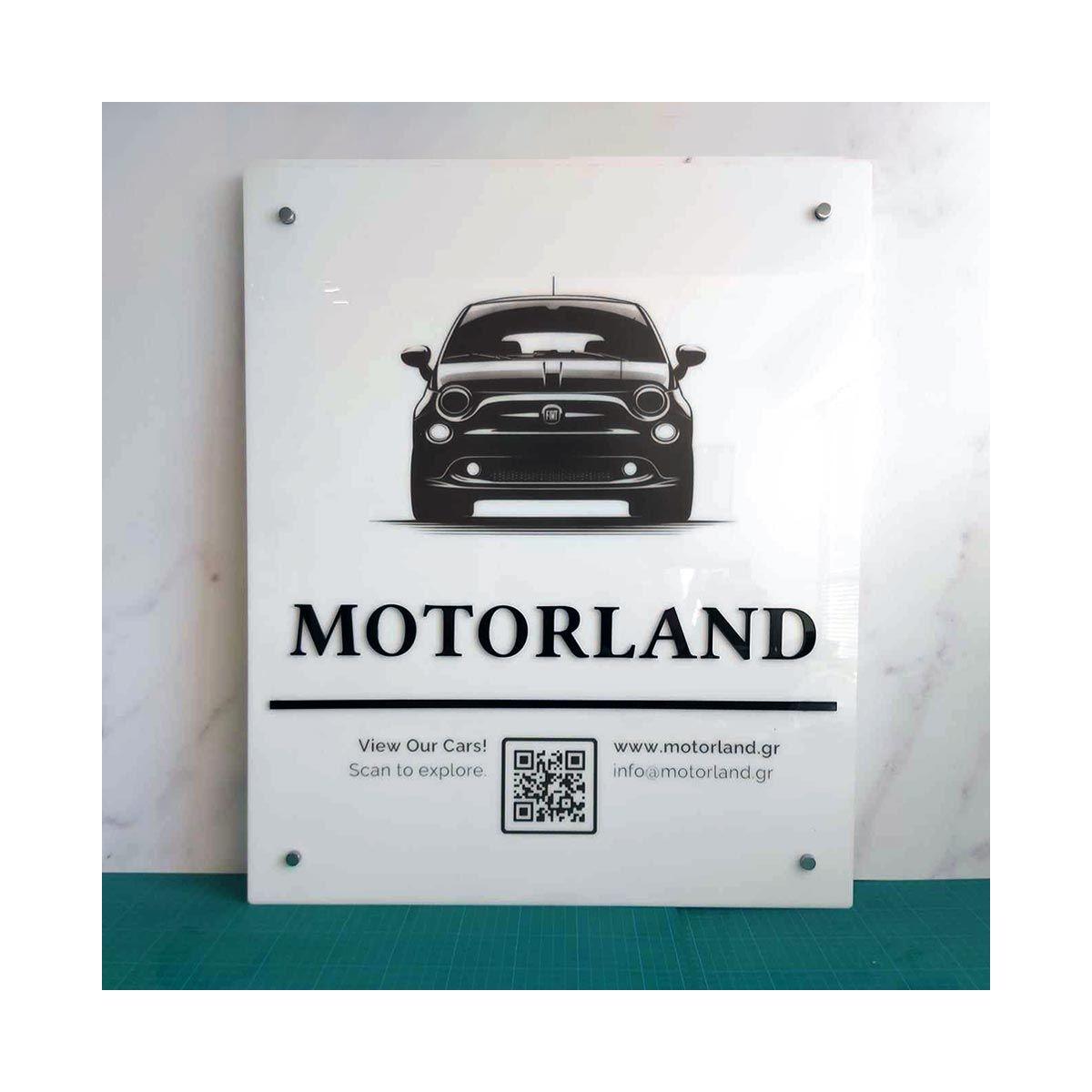 Πινακίδα εκτύπωση σε λευκό plexiglass, συνδυασμός με 3d κείμενο κοπή laser