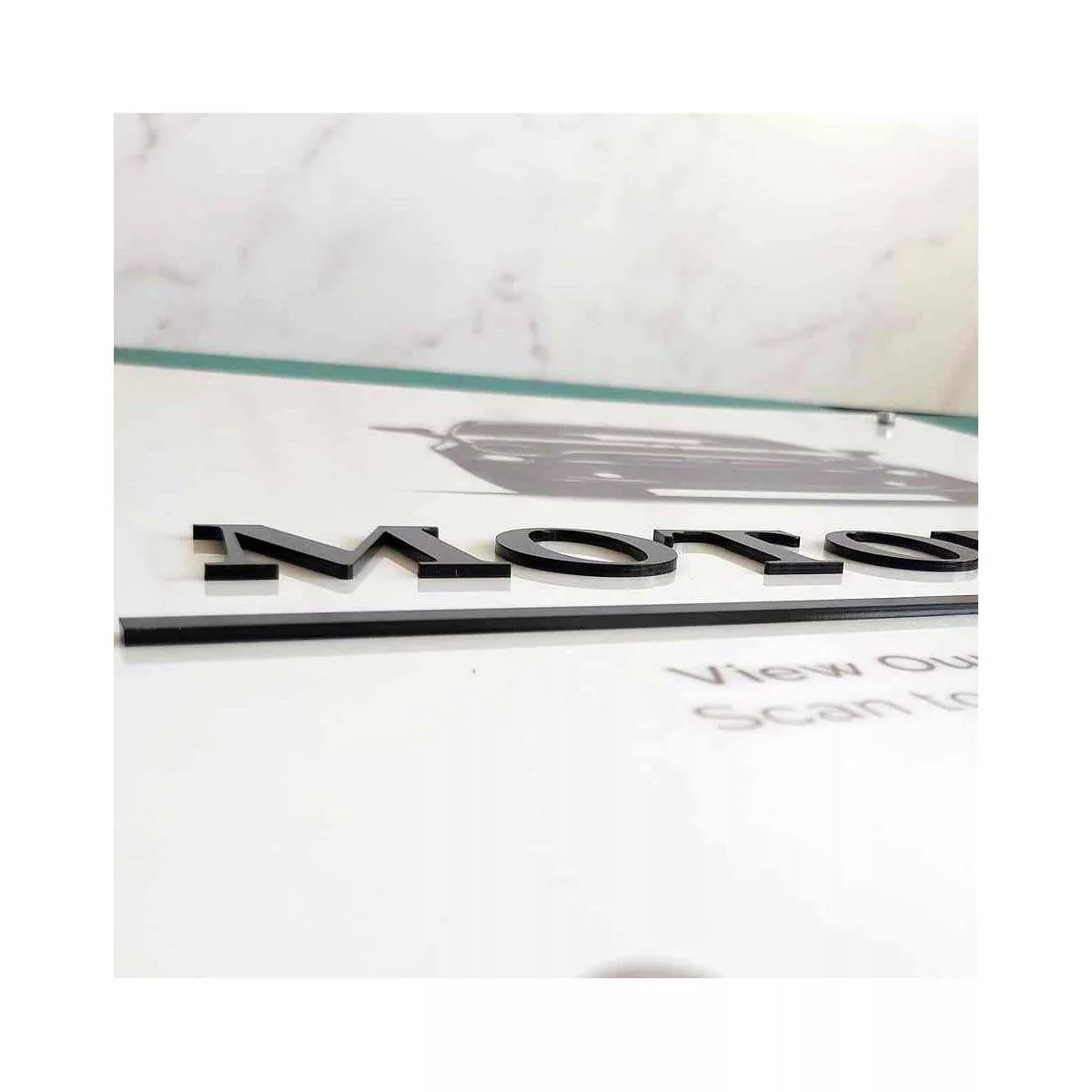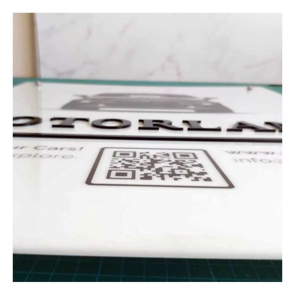 Πινακίδα εκτύπωση σε λευκό plexiglass, συνδυασμός με 3d κείμενο κοπή laser