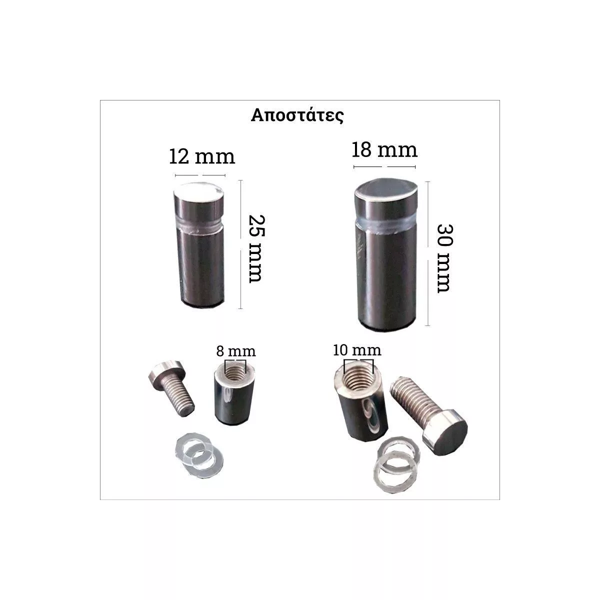 • Αποστάτες Inox, εξέχουν ~ 20-30 mm, τοποθέτηση με βίδες *