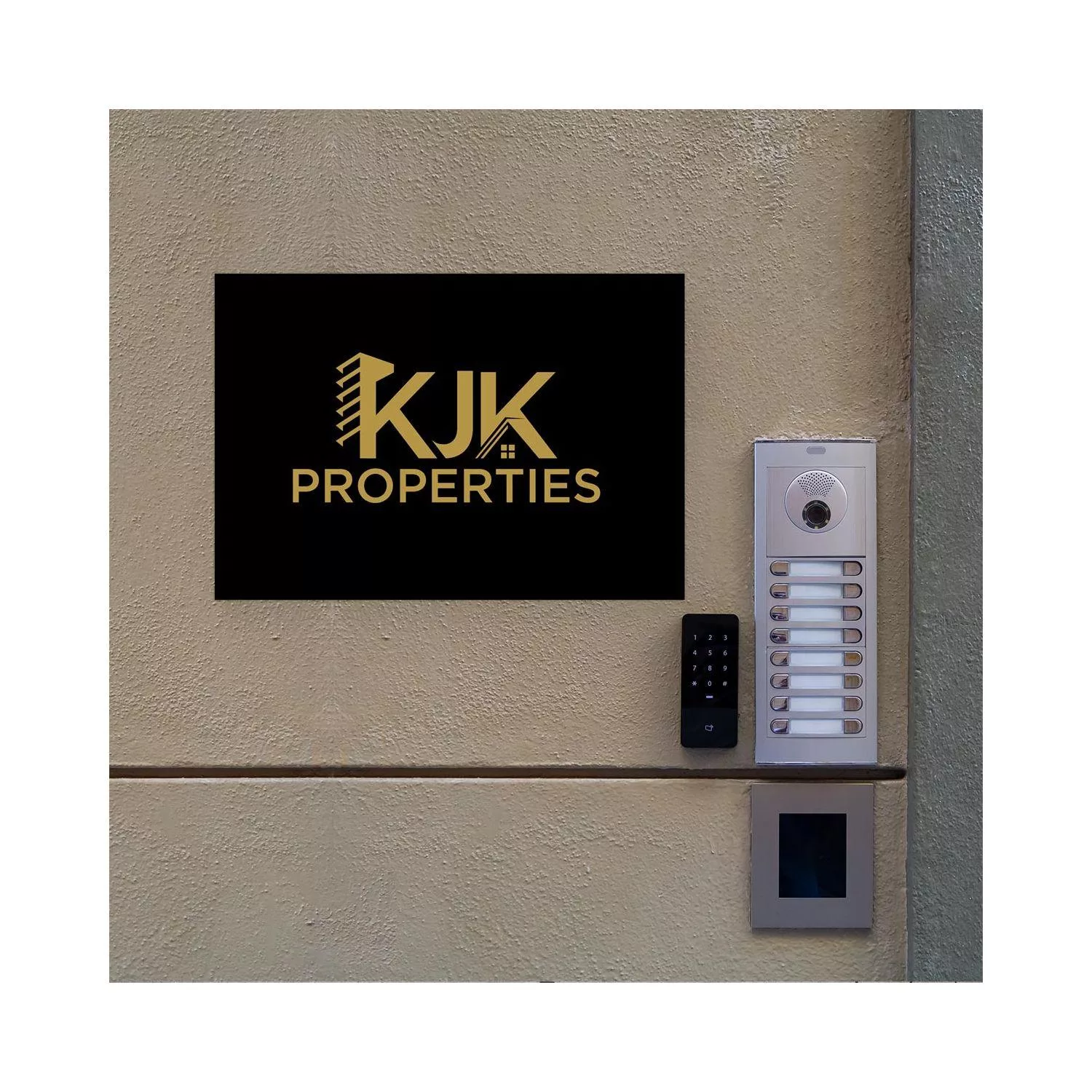 Πινακίδα επιχείρησης μαύρο plexiglass, χρυσά γράμματα βινυλίου