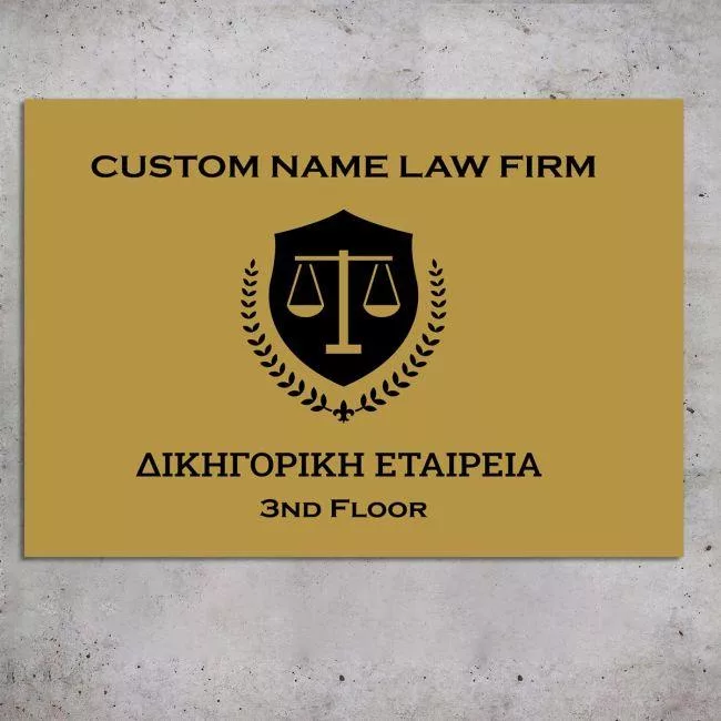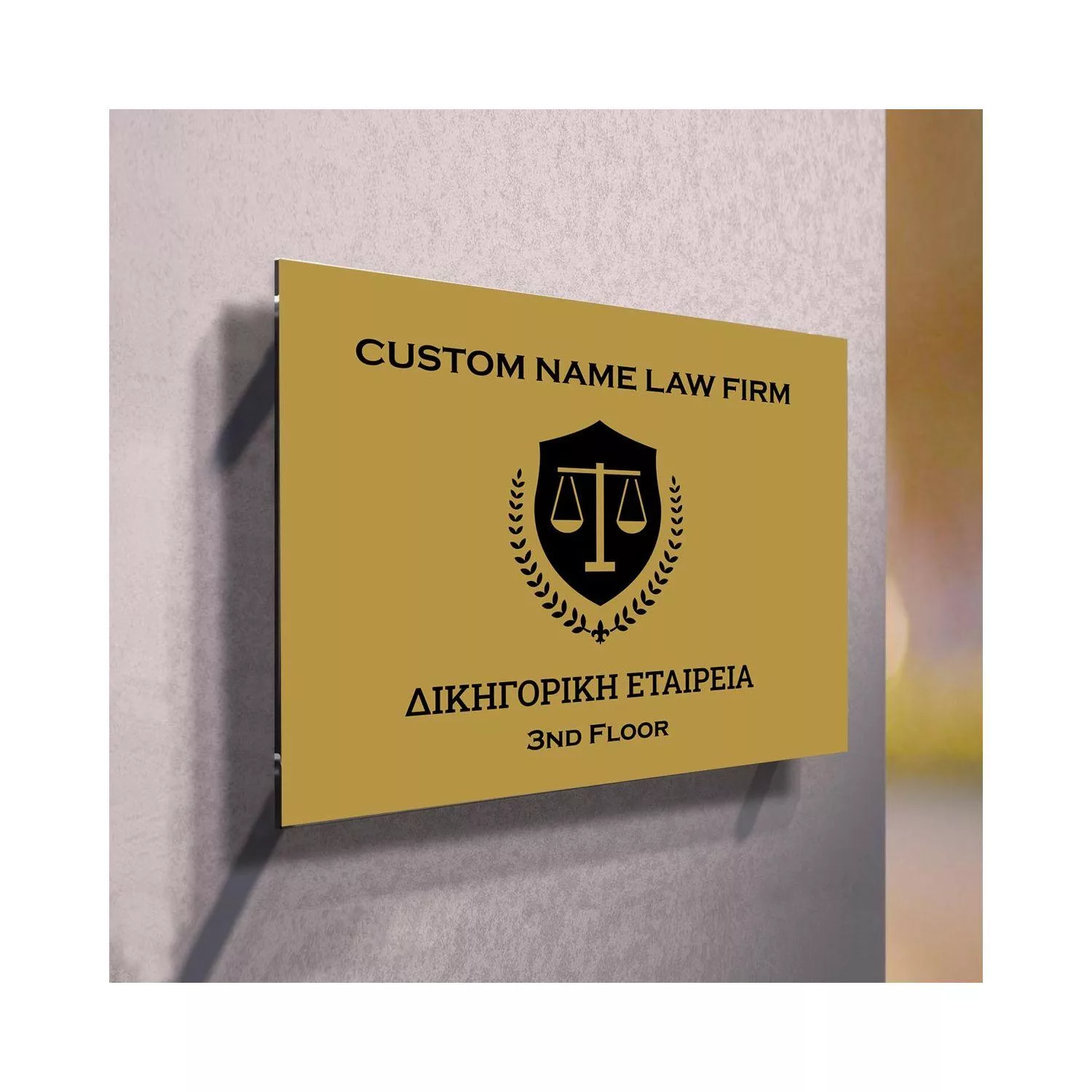 Πινακίδα επιχείρησης χρυσό plexiglass, μαύρο κείμενο ή λογότυπο