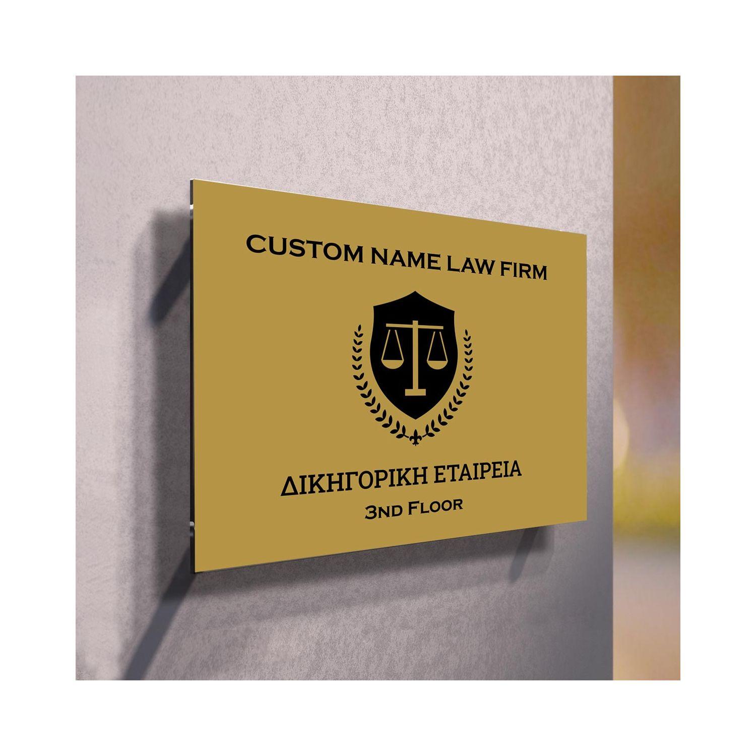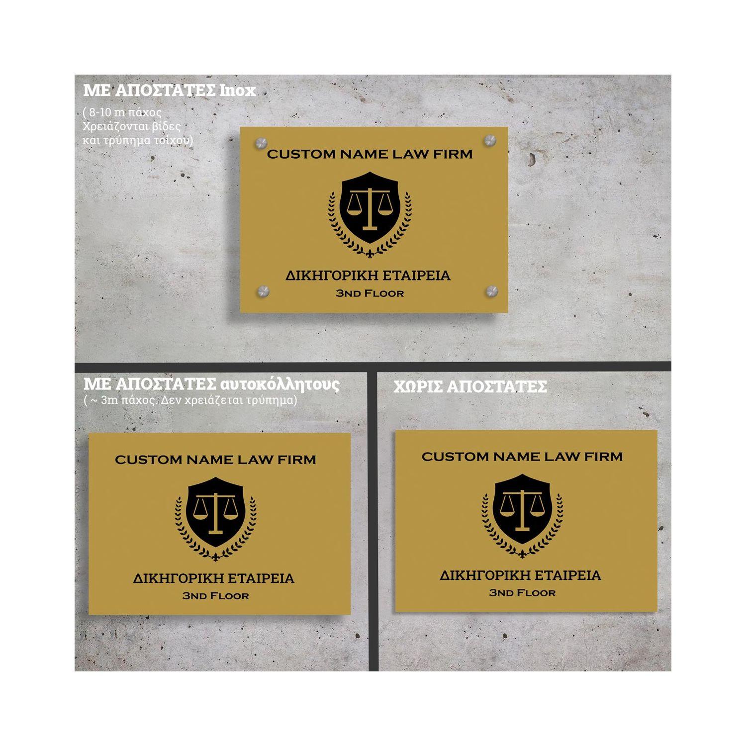 Πινακίδα plexiglass χρυσό, χαραγμένη ώστε να φαίνεται το μαύρο plexiglass υπόστρωμα, με κείμενο ή/και λογότυπο