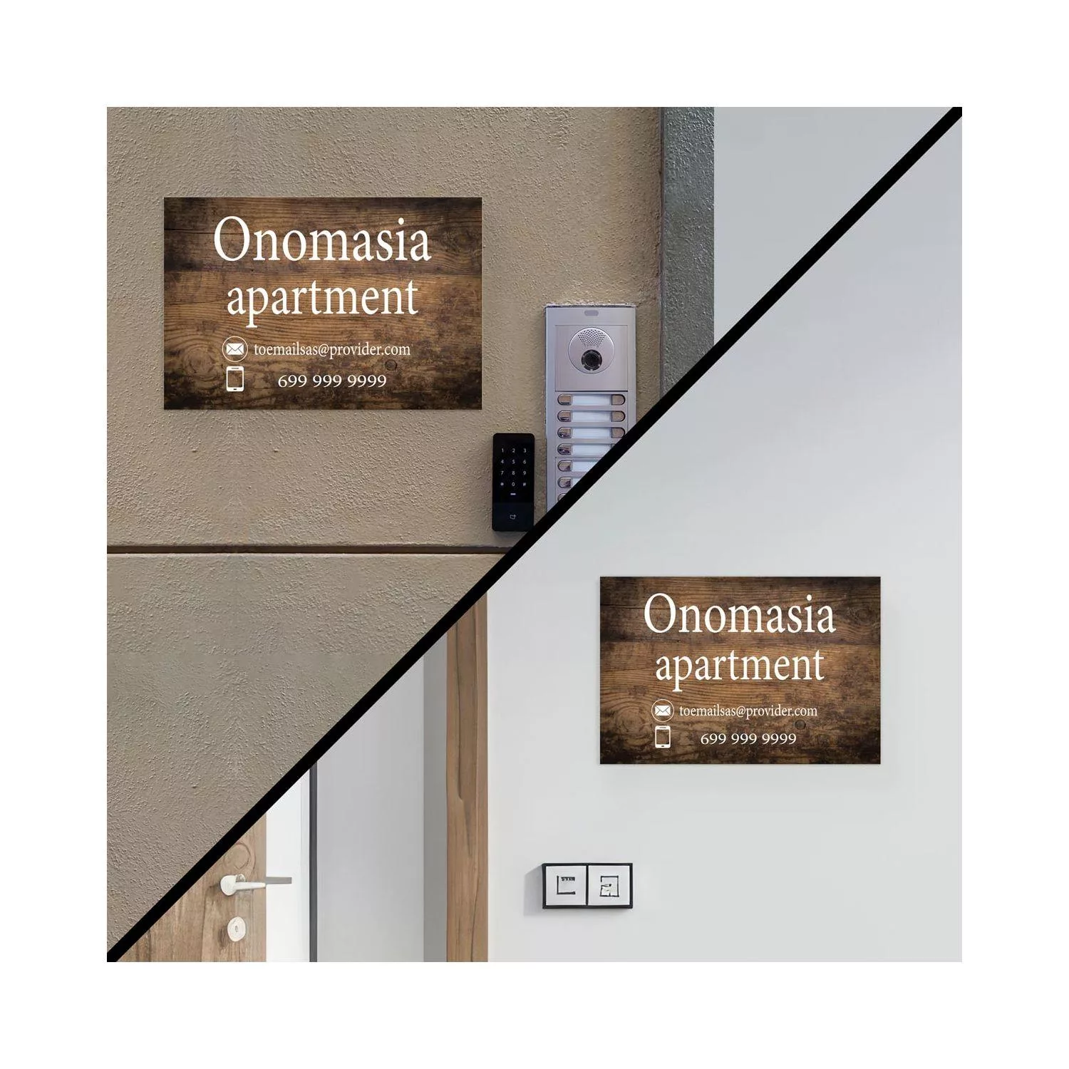 Πινακίδα plexiglass εξωτερικού χώρου, απομίμηση ξύλου, προσωποποιημένο κείμενο