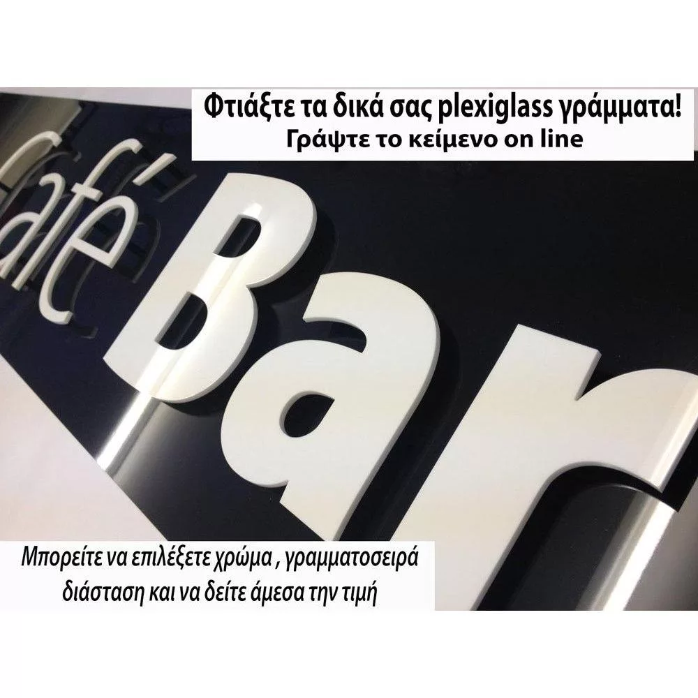 Plexi glass γράμματα για μεγάλες διαστάσεις (- ως 200 cm συν.πλάτος) για πινακίδες και επιγραφές, Online κείμενο
