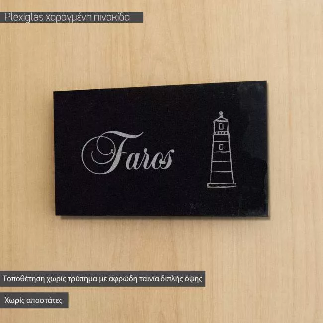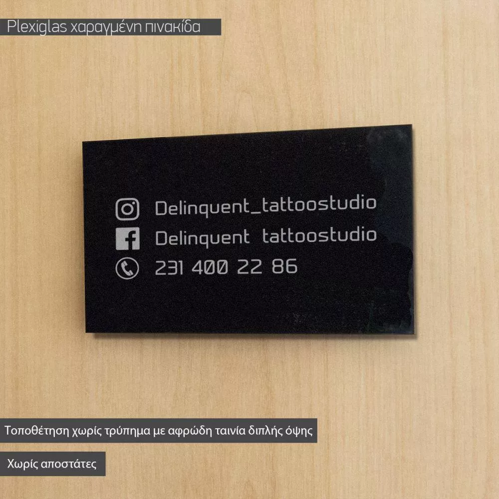 Πινακίδα από plexiglass χαραγμένη με laser.