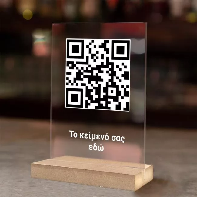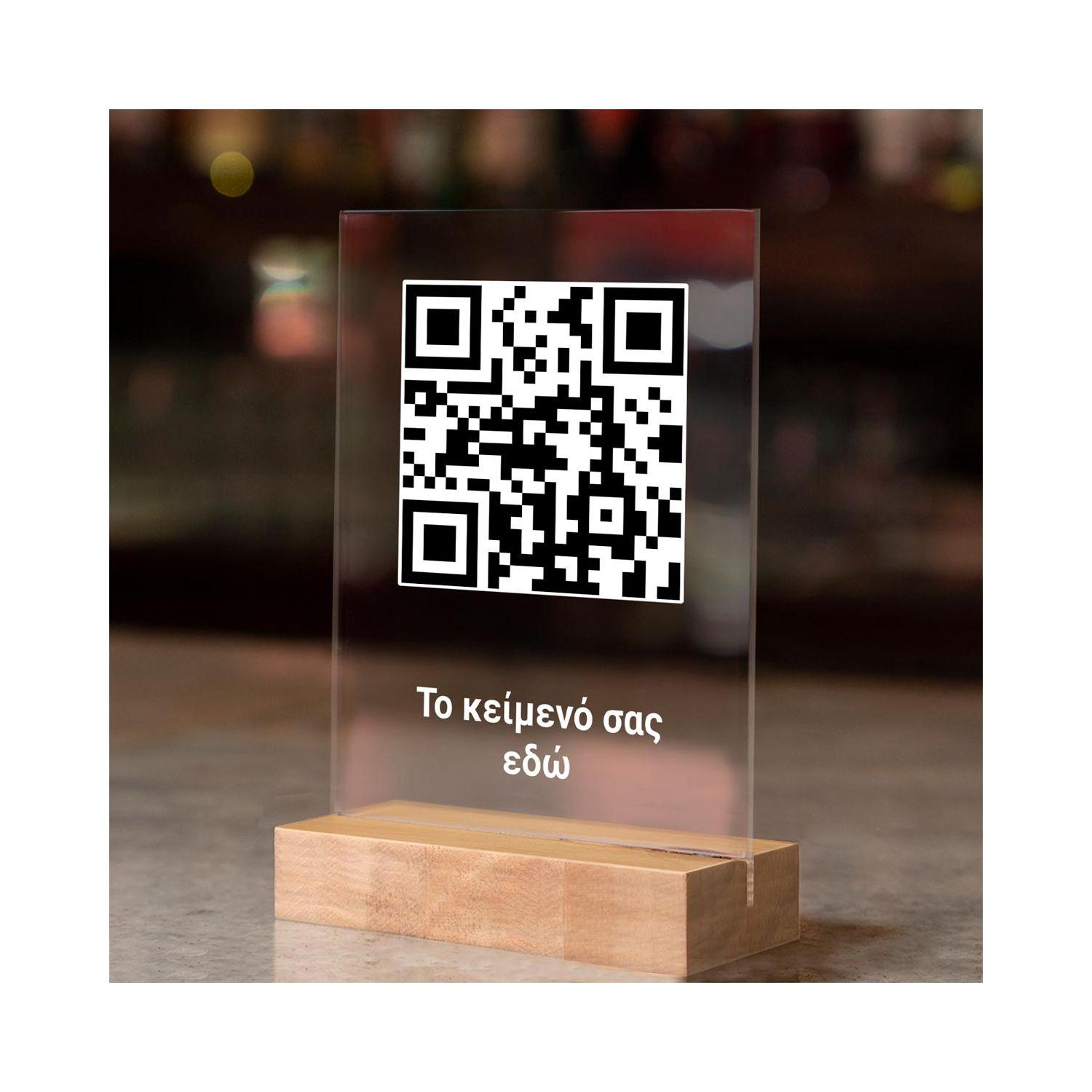 Stand plexiglass με εκτύπωση QR code, με λευκό περίγραμμα