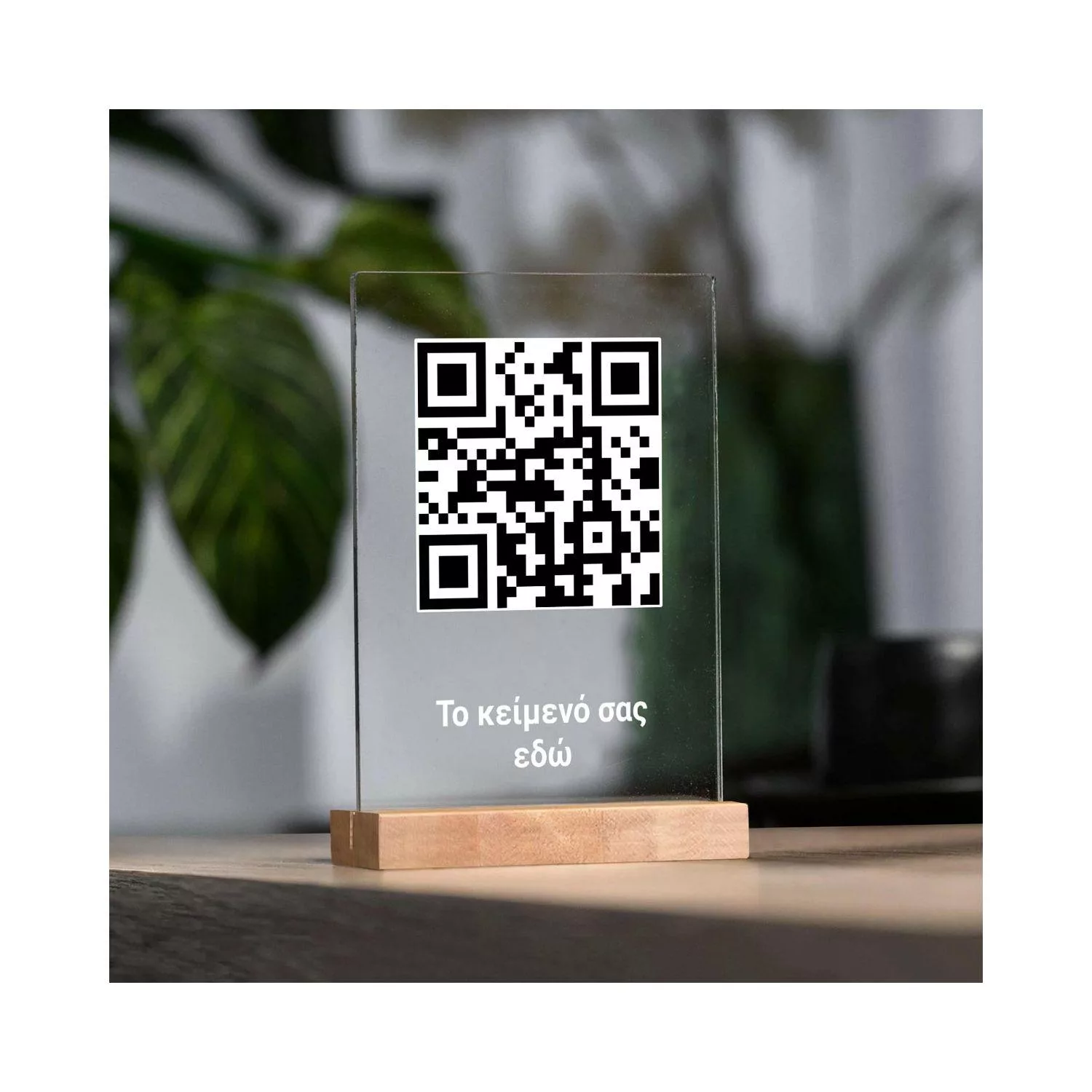 Plexiglass διάφανο, QR κωδικός μαύρος, λευκό περίγραμμα, με κείμενο