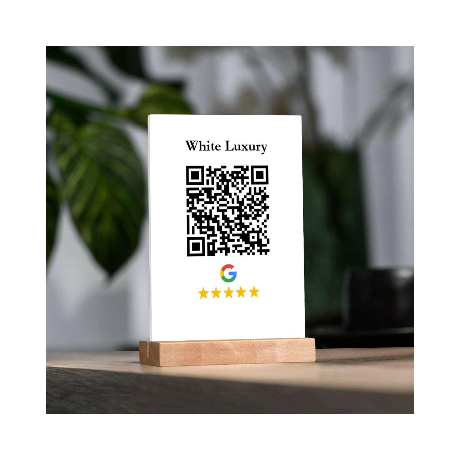 Plexiglass λευκό, QR κωδικός μαύρο, αξιολογήστε μας στο Google