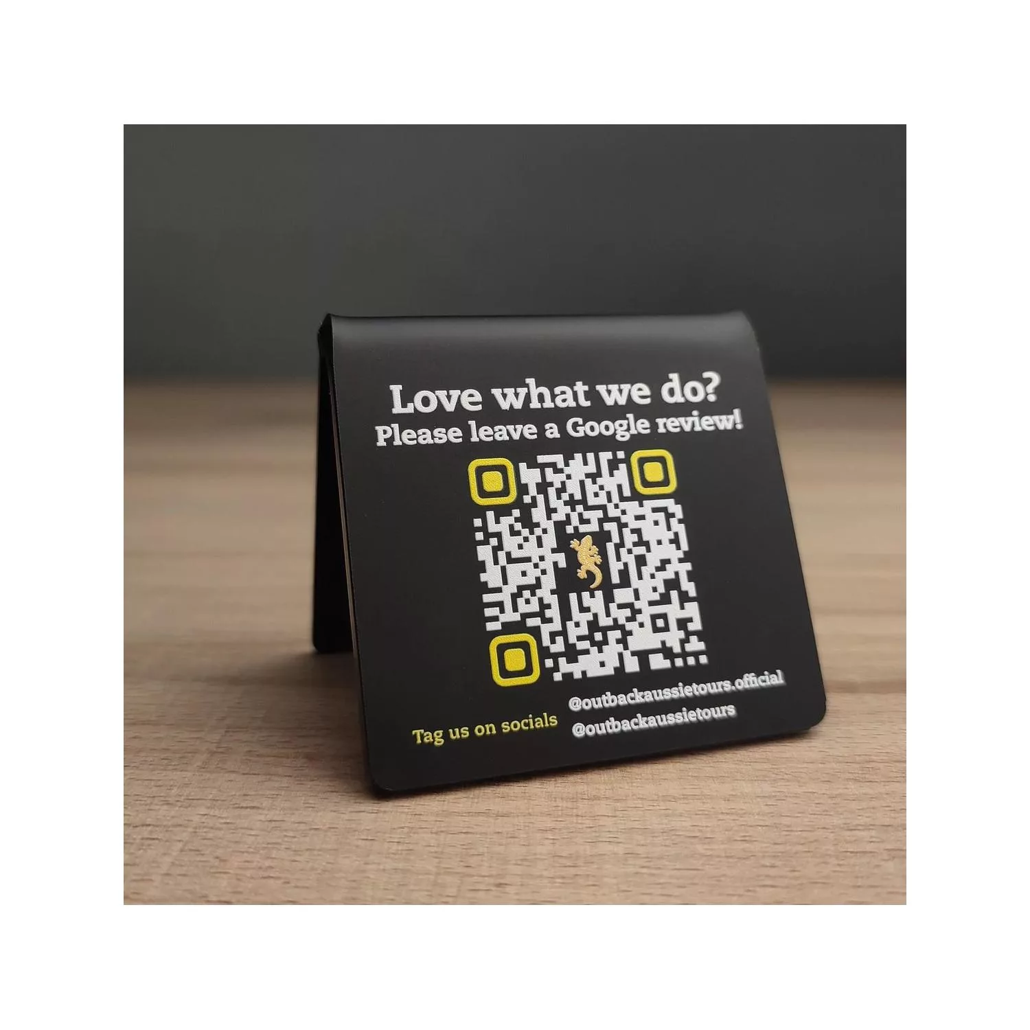 Stand plexiglass με εκτύπωση QR code, λογότυπου, κειμένου