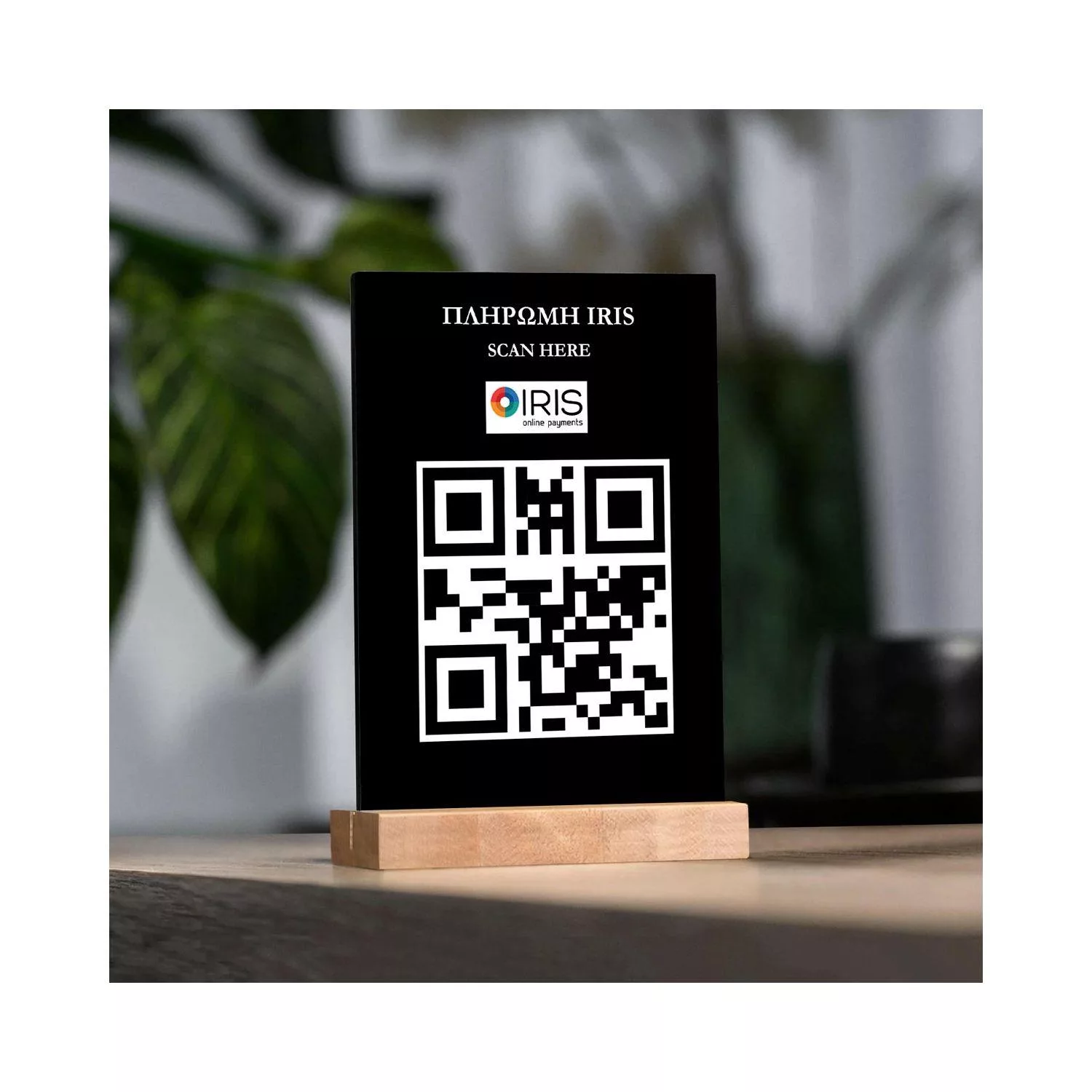 Stand plexiglass λευκό, με εκτύπωση QR code, IRIS Πληρωμή