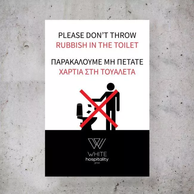 Πινακίδα plexiglass, toilet don't throw rabbish, με λογότυπο