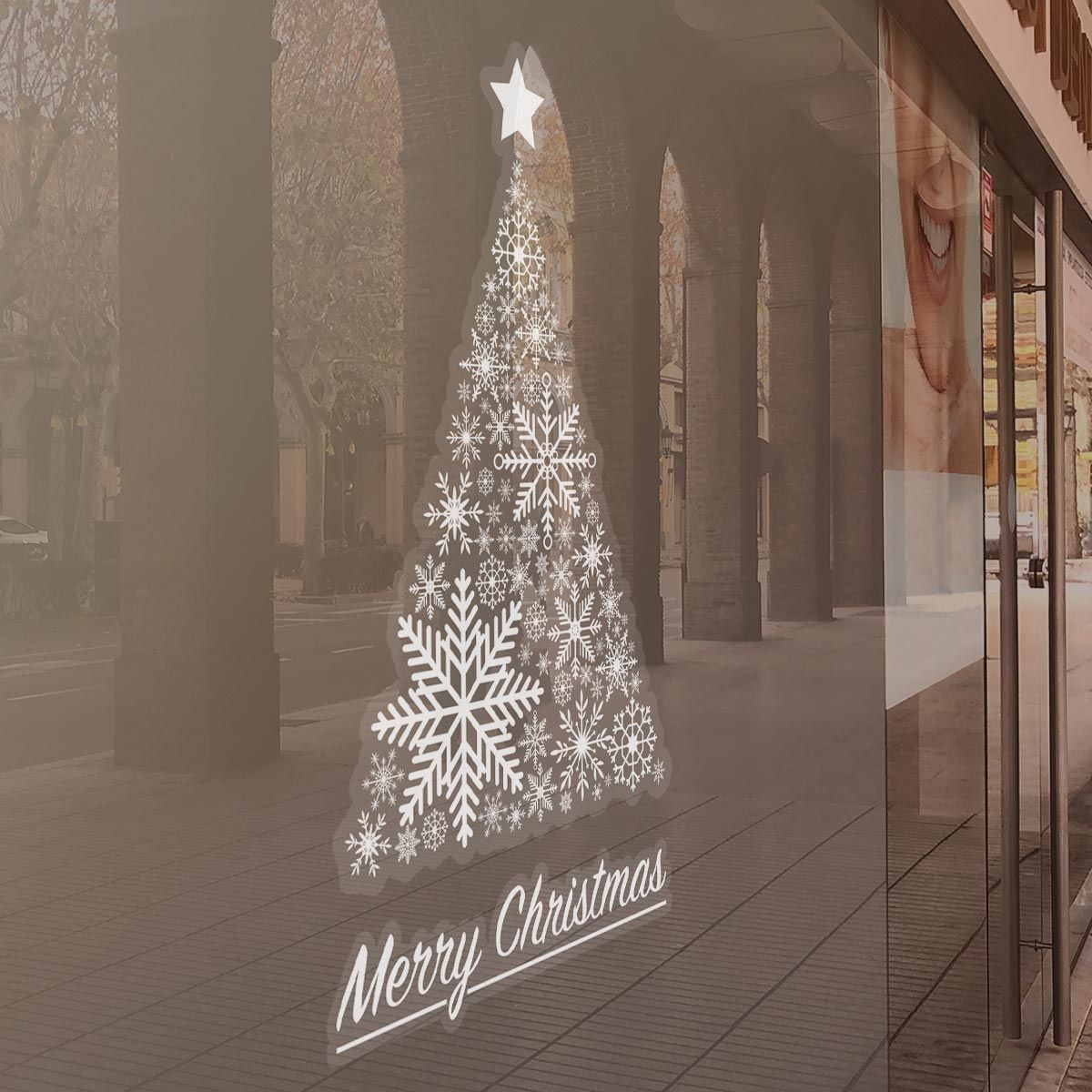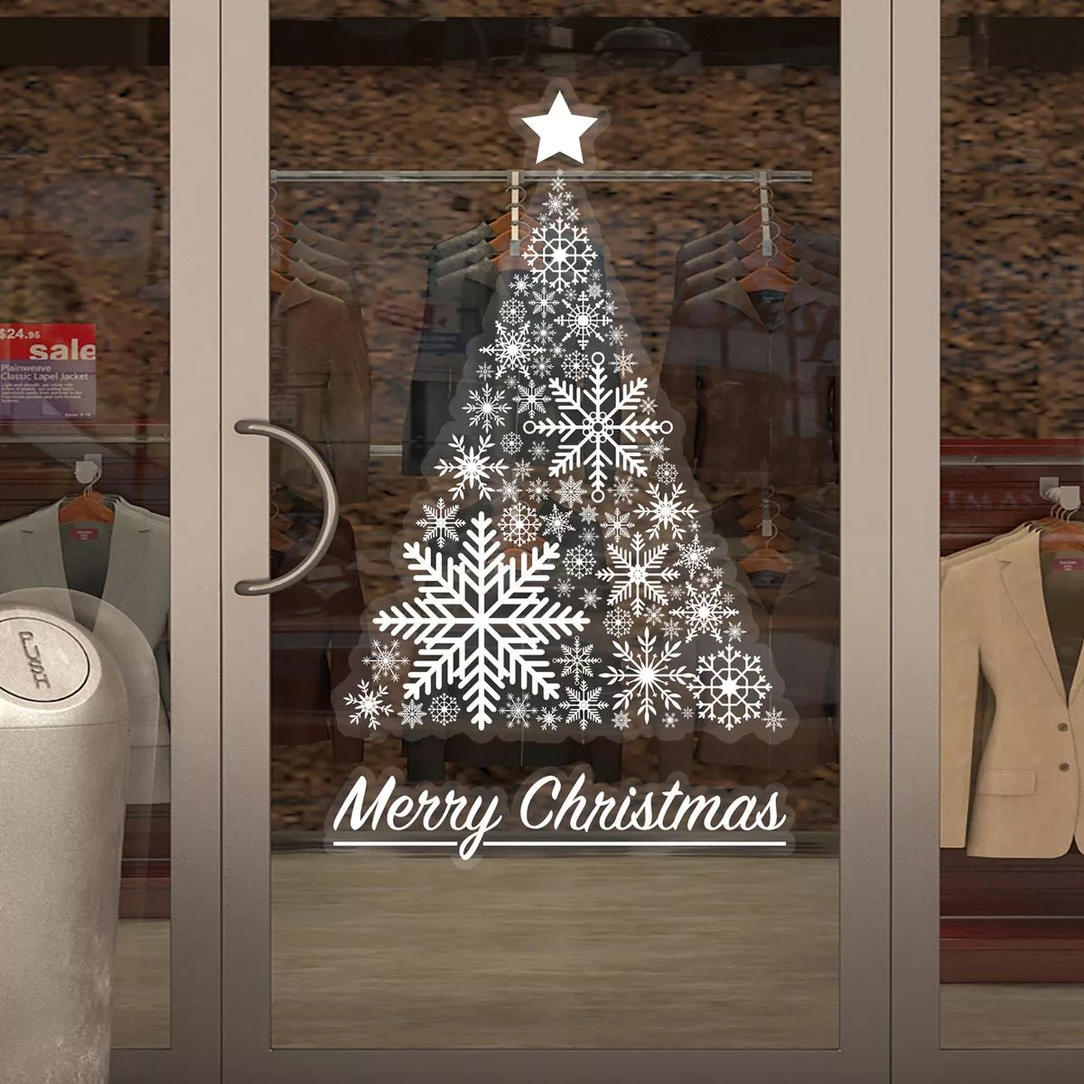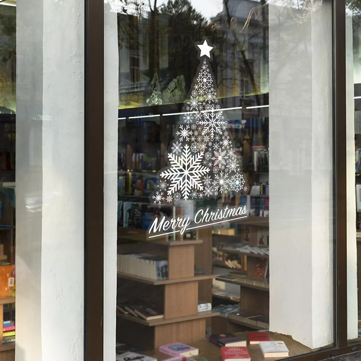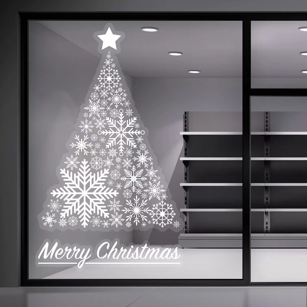 Εορταστικό αυτοκόλλητο βιτρίνας ή τοίχου, Χριστουγεννιάτικο αυτοκόλλητο δέντρο λευκό, art 1