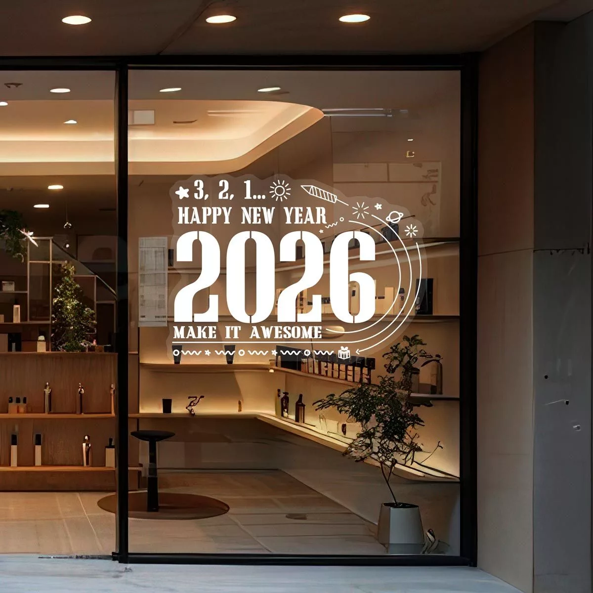Χριστουγεννιάτικο αυτοκόλλητο, Happy New Year art 1