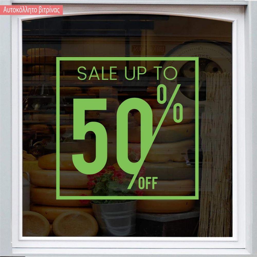 Αυτοκόλλητο εκπτώσεων βιτρίνας Sales up to 50 art2, κοπτικό