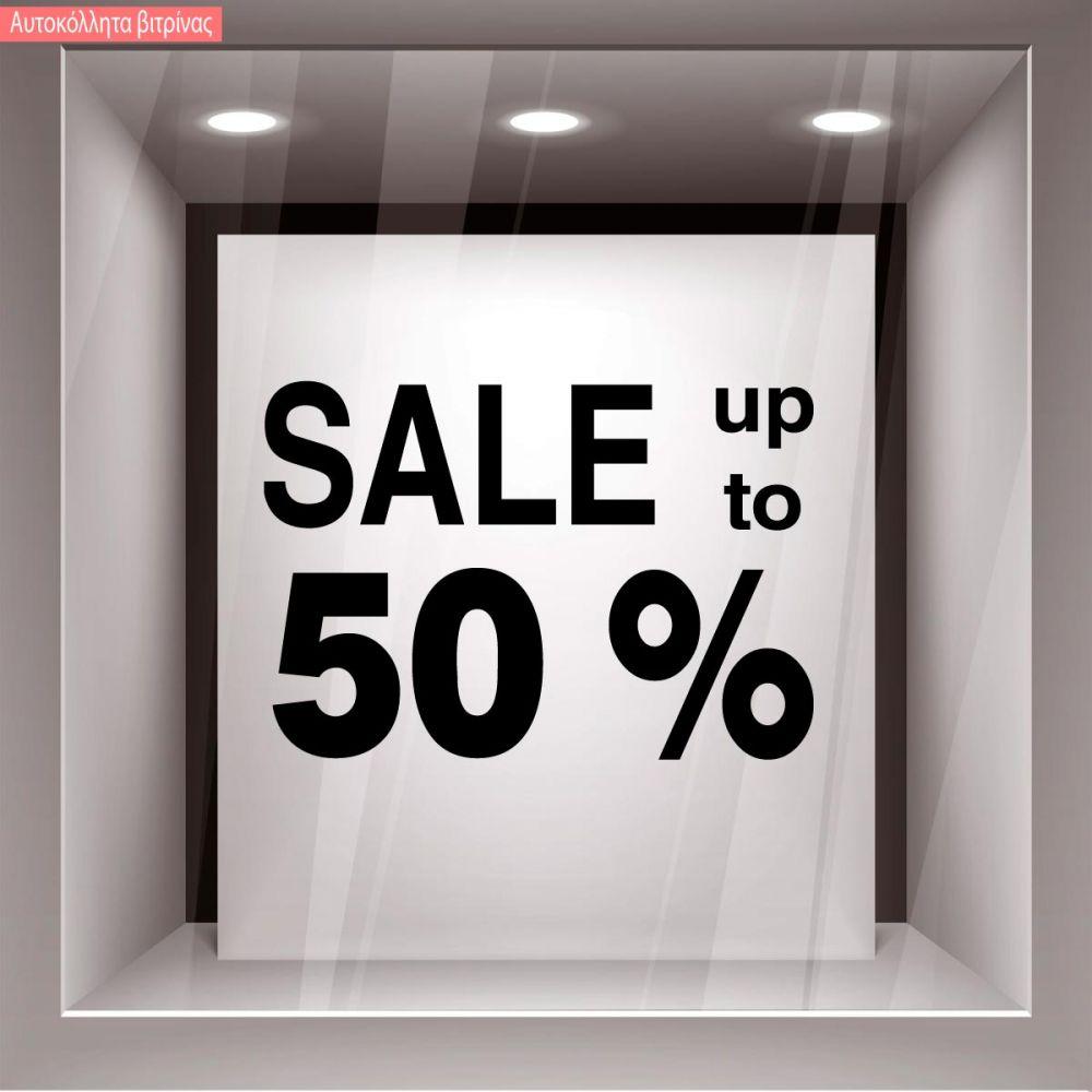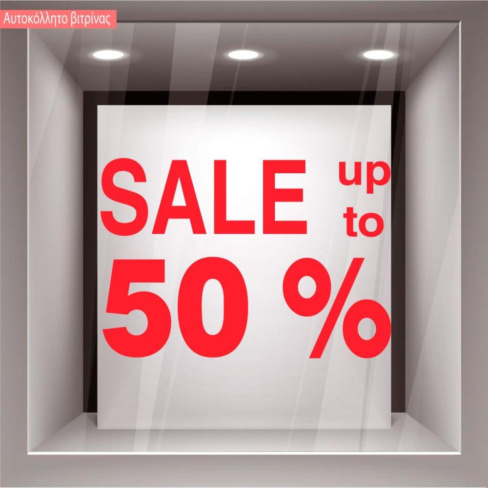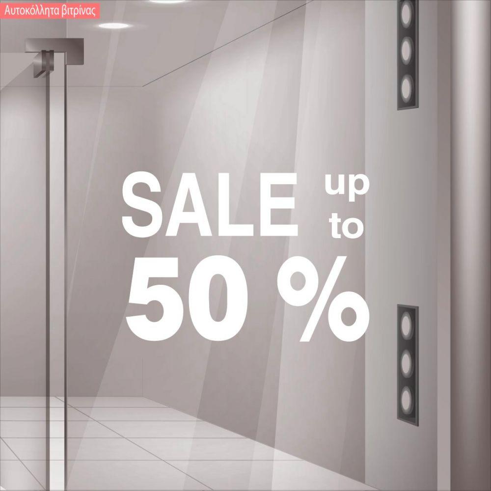 Αυτοκόλλητο εκπτώσεων βιτρίνας Sales up to 50, κοπτικό