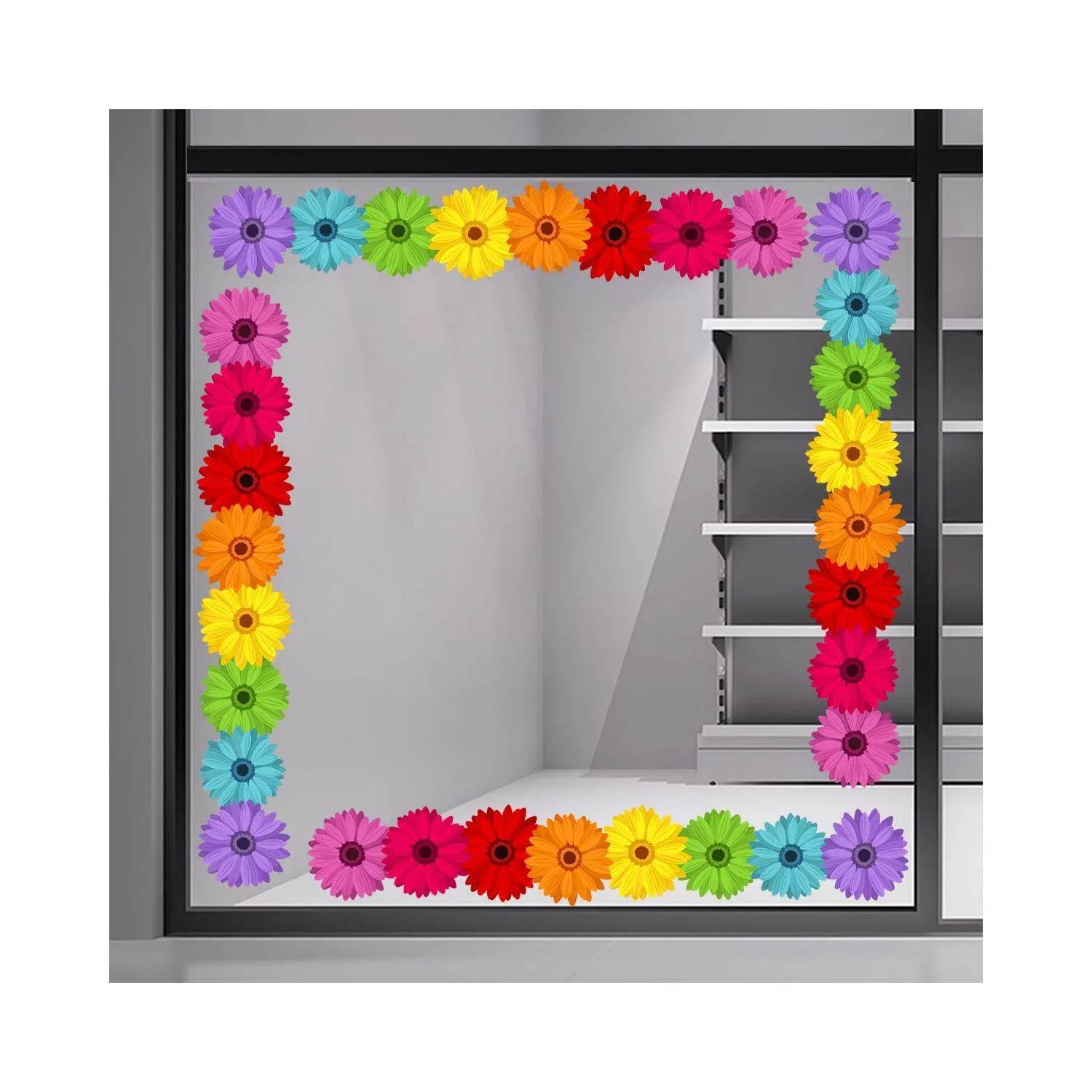 Λουλούδια σε ανοιξιάτικα χρώματα μπορντούρα αυτοκόλλητο βιτρίνας