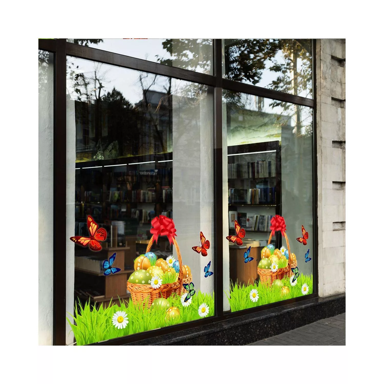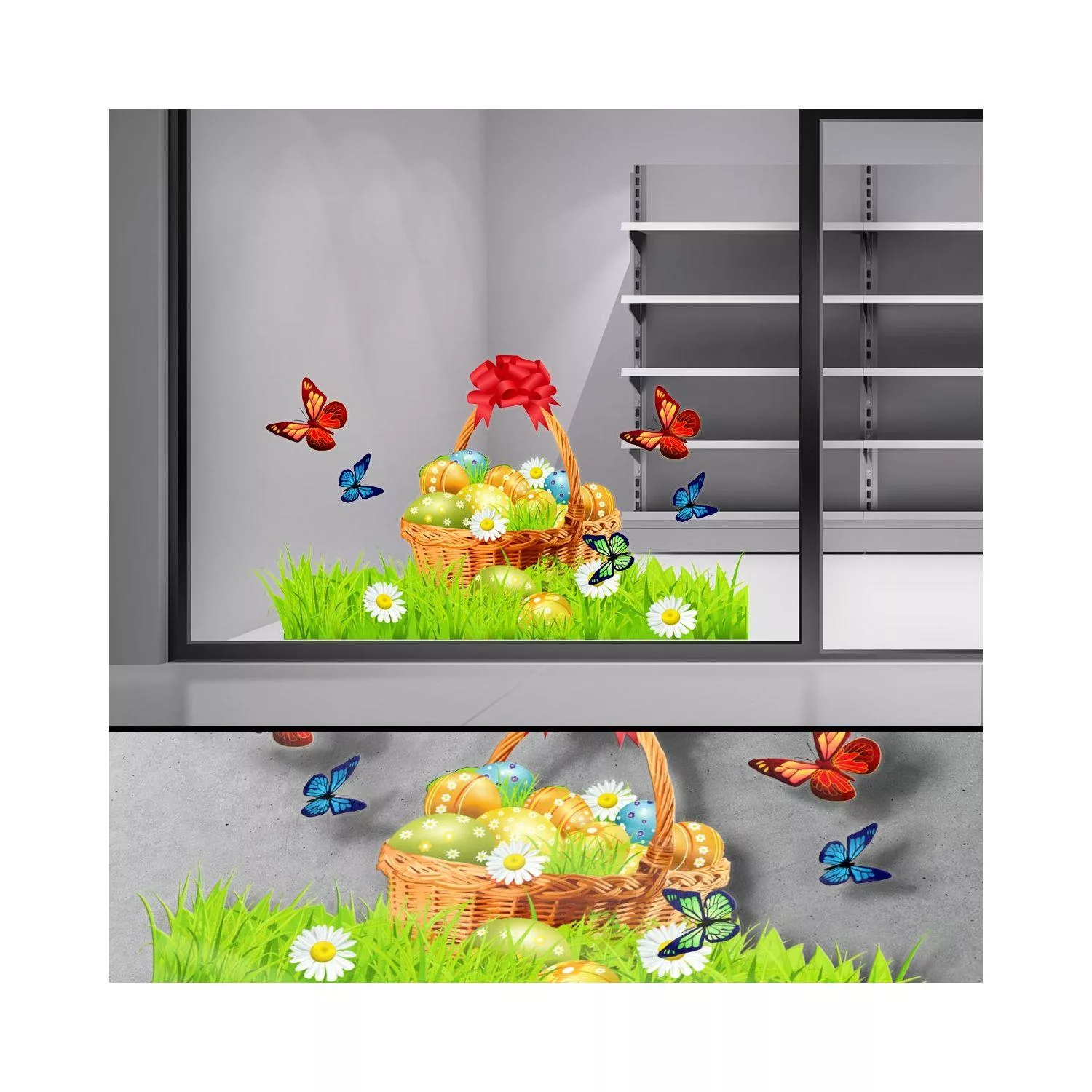 Αυτοκόλλητο πασχαλινό καλάθι για διακόσμηση βιτρίνας και τοίχου. Ιδανικό για επαγγελματικούς χώρους.