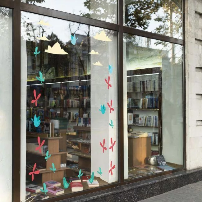 Διακοσμήστε την βιτρίνα ή τον τοίχο με σύννεφα , πουλιά και πεταλούδες. Αποτελούν ιδανικό συμπλήρωμα στο spring time , αυτοκόλλητο ανοιξιάτικης βιτρίνας