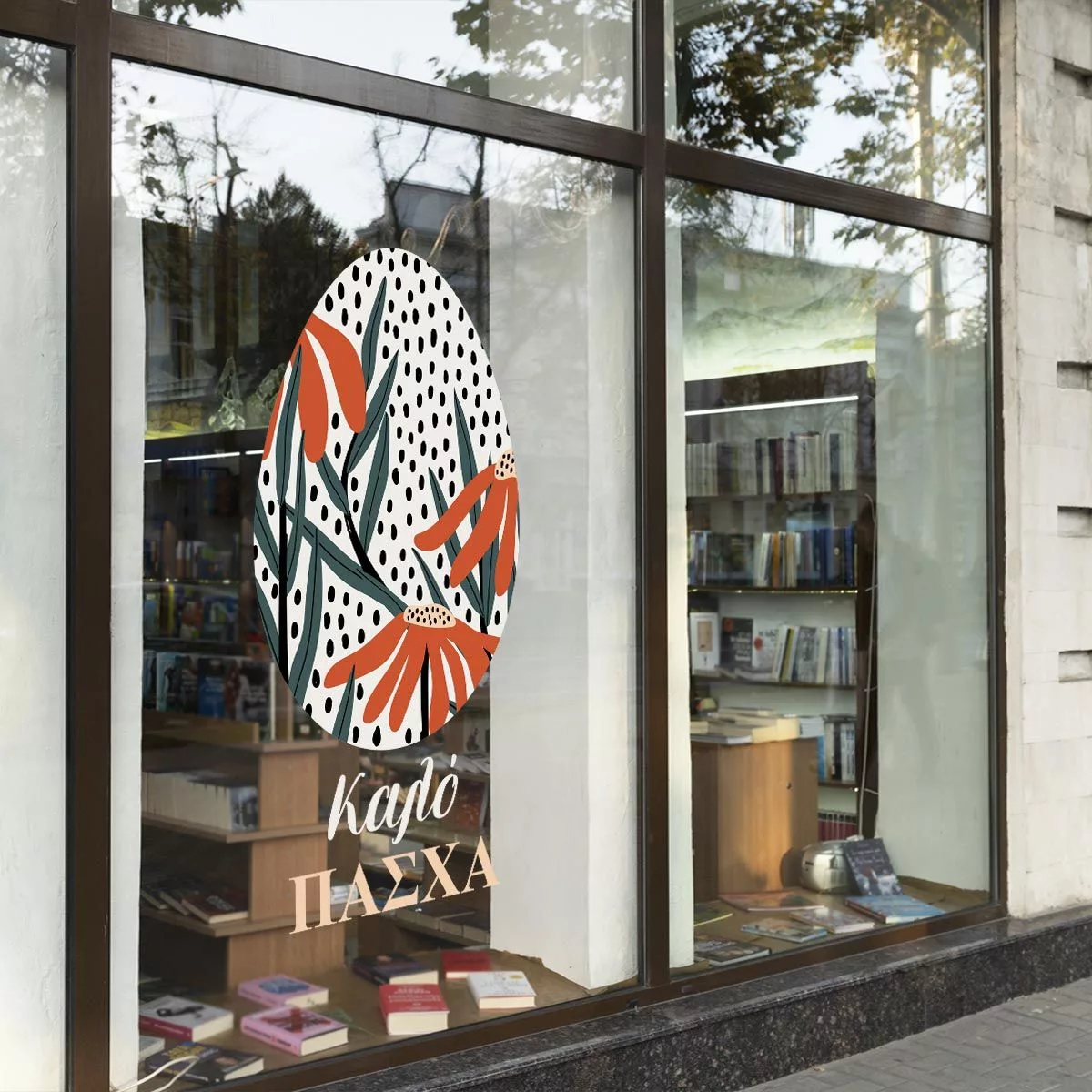 Πασχαλινό αυτοκόλλητο βιτρίνας με floral σχέδιο αυγού. Ιδανικό για γιορτινή ανανέωση.