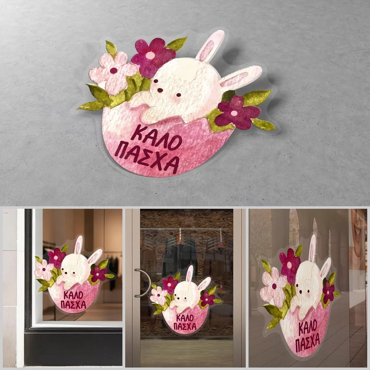 Αυτοκόλλητο βιτρίνας, Watercolour Easter Bunny