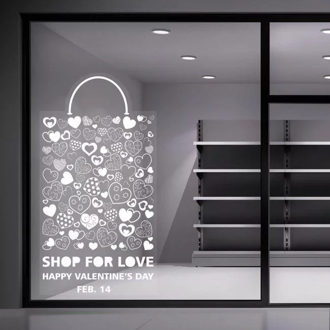 Αυτοκόλλητο βιτρίνας Αγίου Βαλεντίνου, shop for love