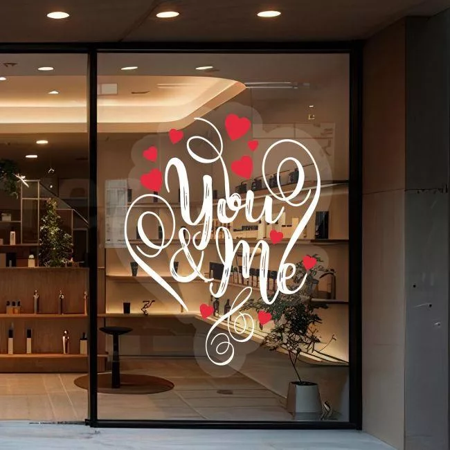 Αυτοκόλλητο βιτρίνας Αγίου Βαλεντίνου, you and me