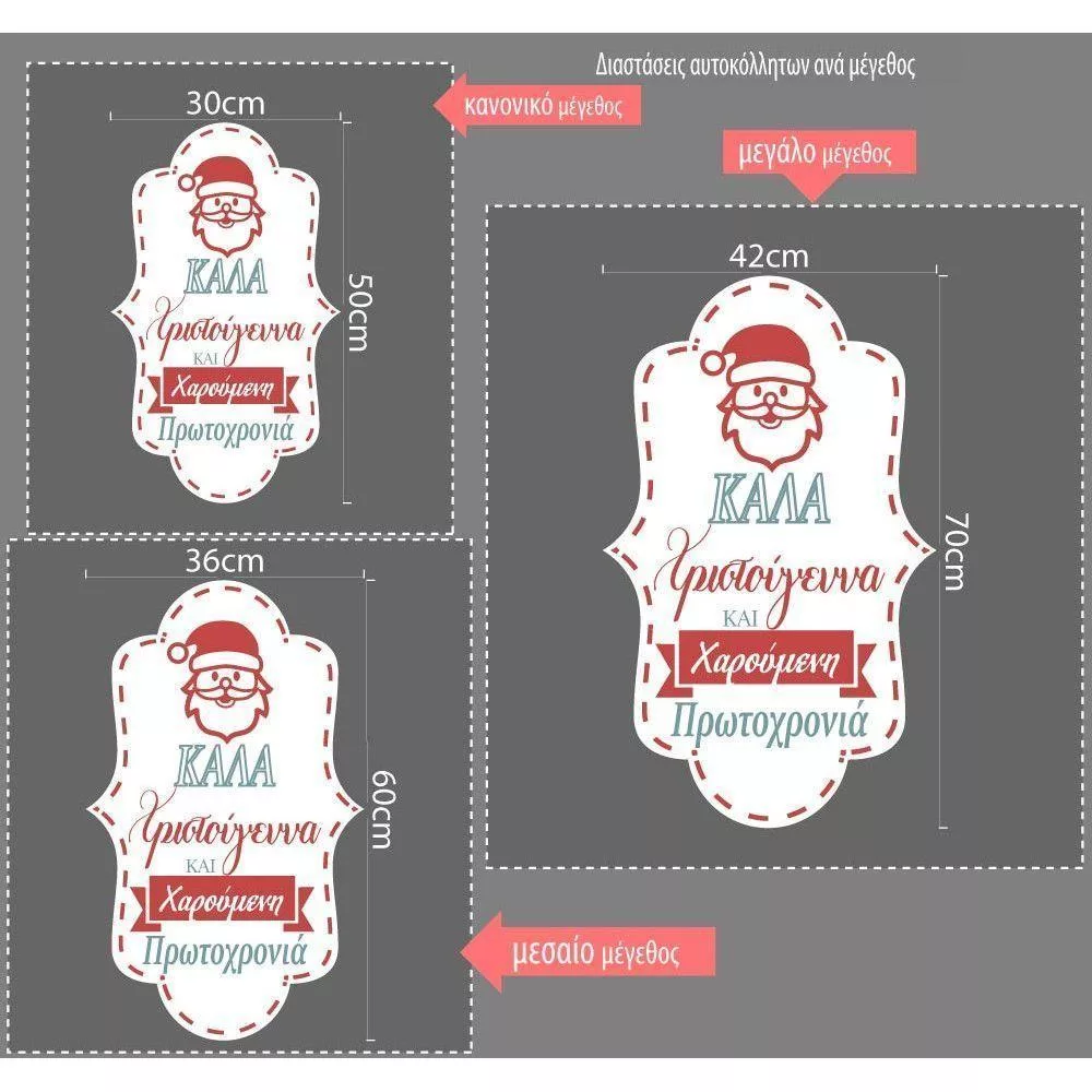 Πινακίδα Καλά Χριστούγεννα Χαρούμενη πρωτοχρονιά, με Αγ. Βασίλη, αυτοκόλλητο βιτρίνας, τοίχου