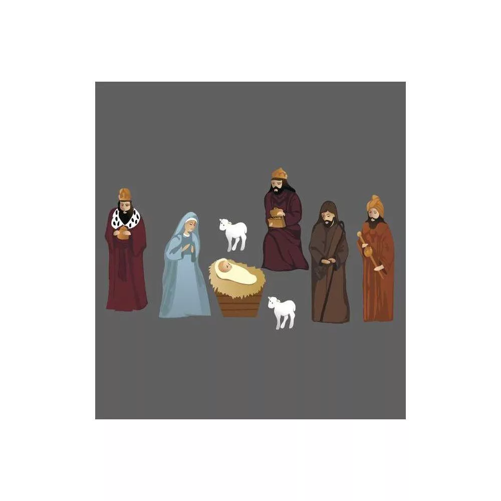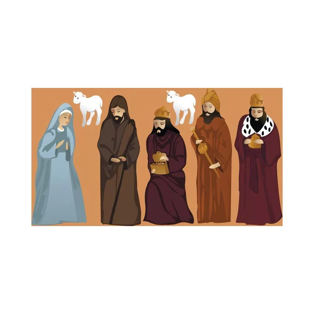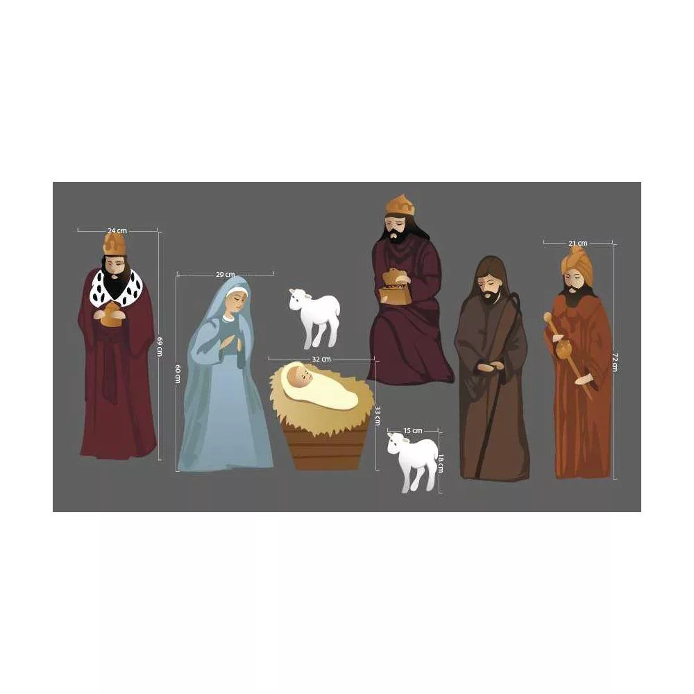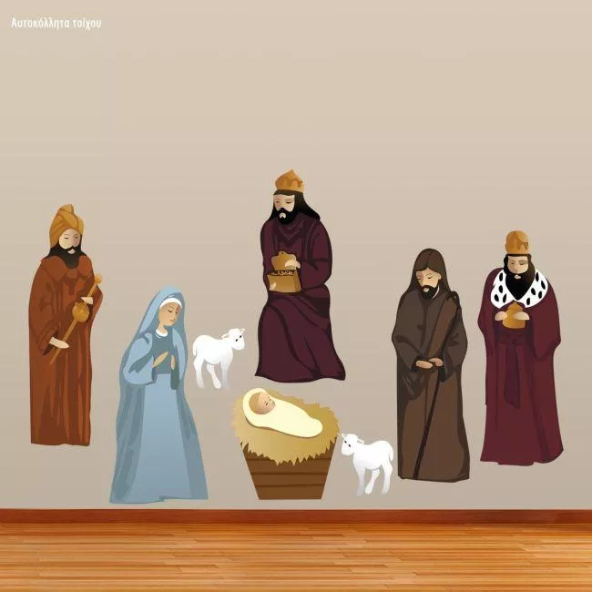 Η Παρθένος, Ιωσήφ και το Θείο βρέφος αγιογραφία, ξύλινες φιγούρες εκτυπωμένες