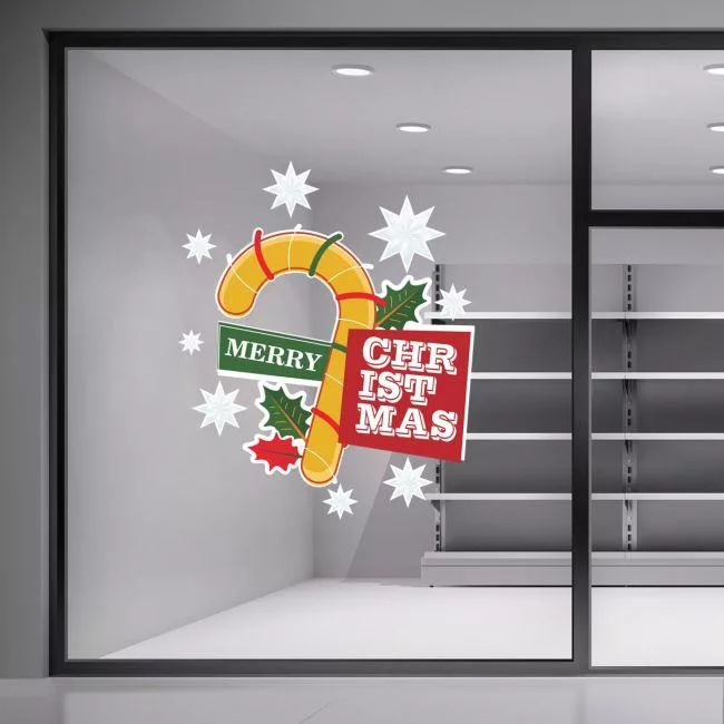 Εορταστικό αυτοκόλλητο βιτρίνας ή τοίχου, Merry Christmas word art 1