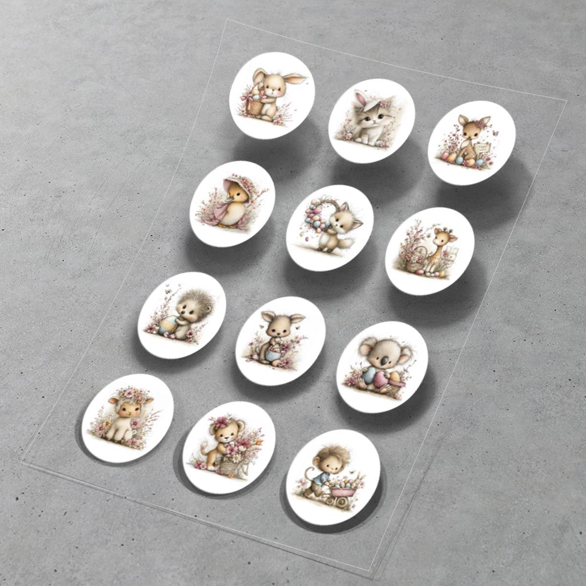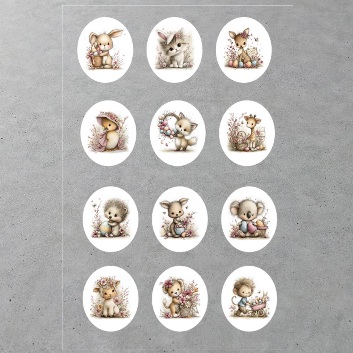 Αυτοκολλητάκια με πανέμορφα Πασχαλινά ζωάκια του χωριού, σετ 12 τμχ