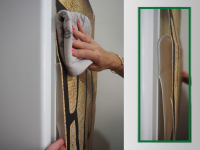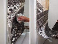 5) Κολλήστε το πάνω μέρος του αυτοκόλλητου με την βοήθεια υφάσματος. Η κίνηση είναι από κάτω προς πάνω