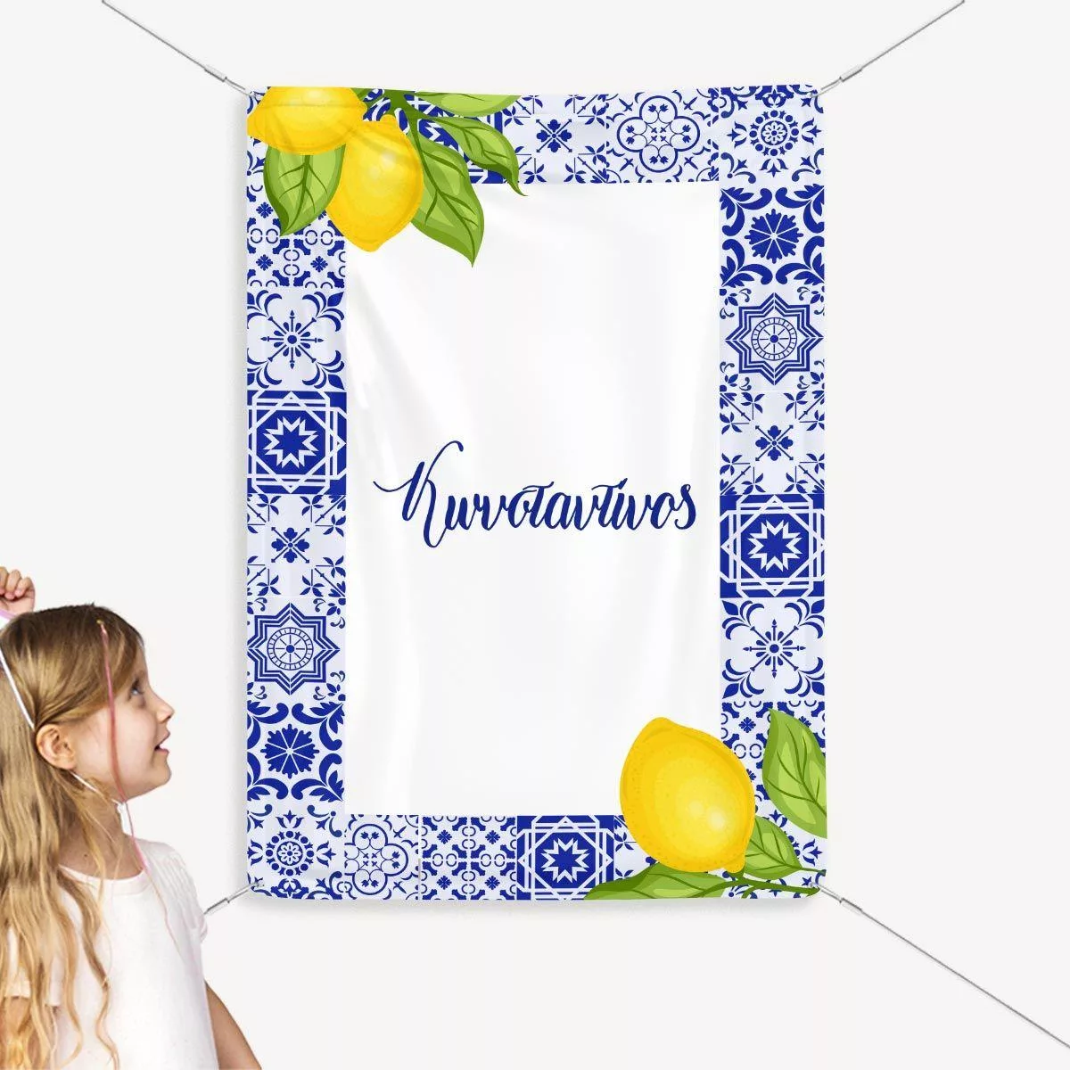 Μπάνερ σε μουσαμά, Blue tiles lemons