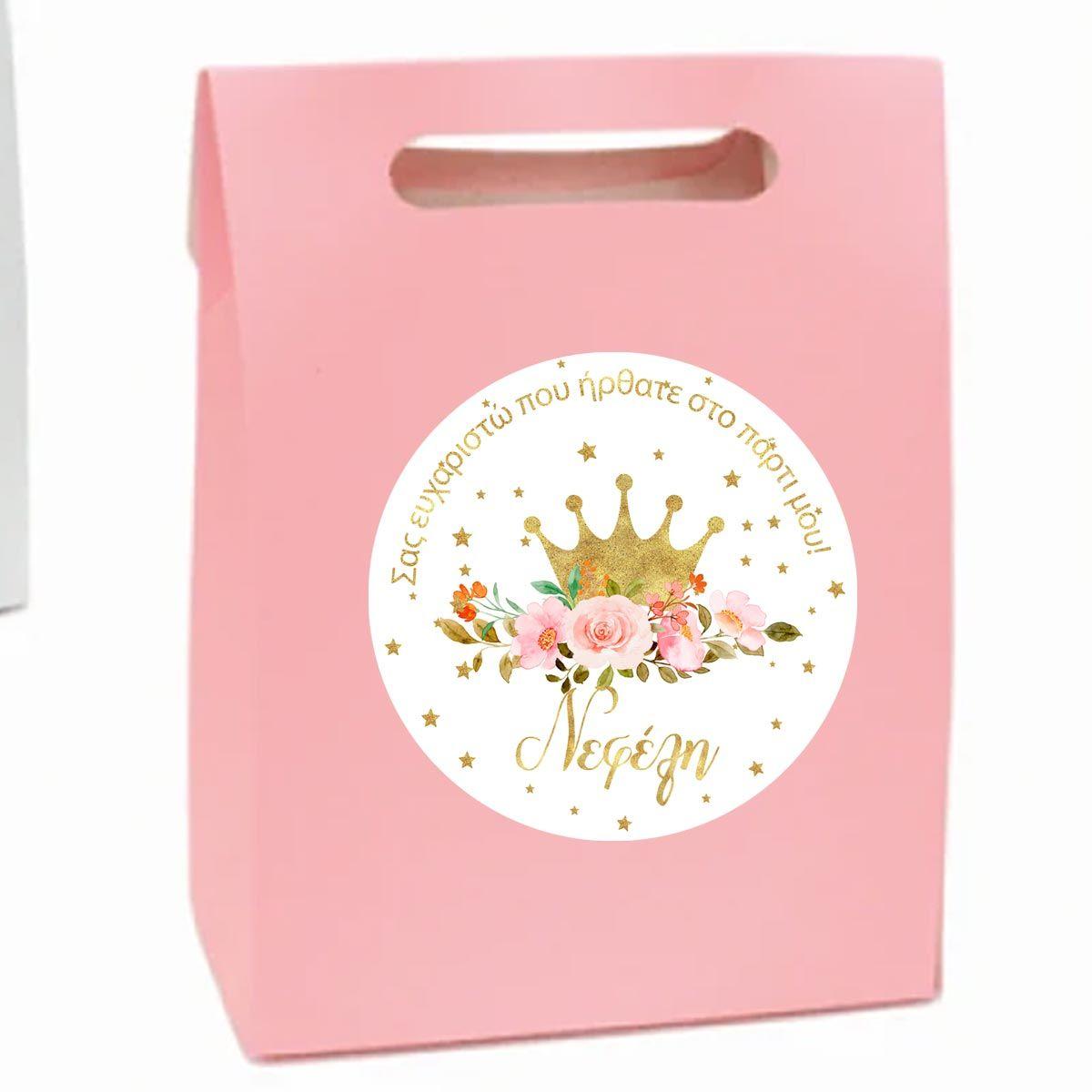 Αυτοκόλλητη ετικέτα Πάρτι, Χρυσή κορώνα με τριαντάφυλλα