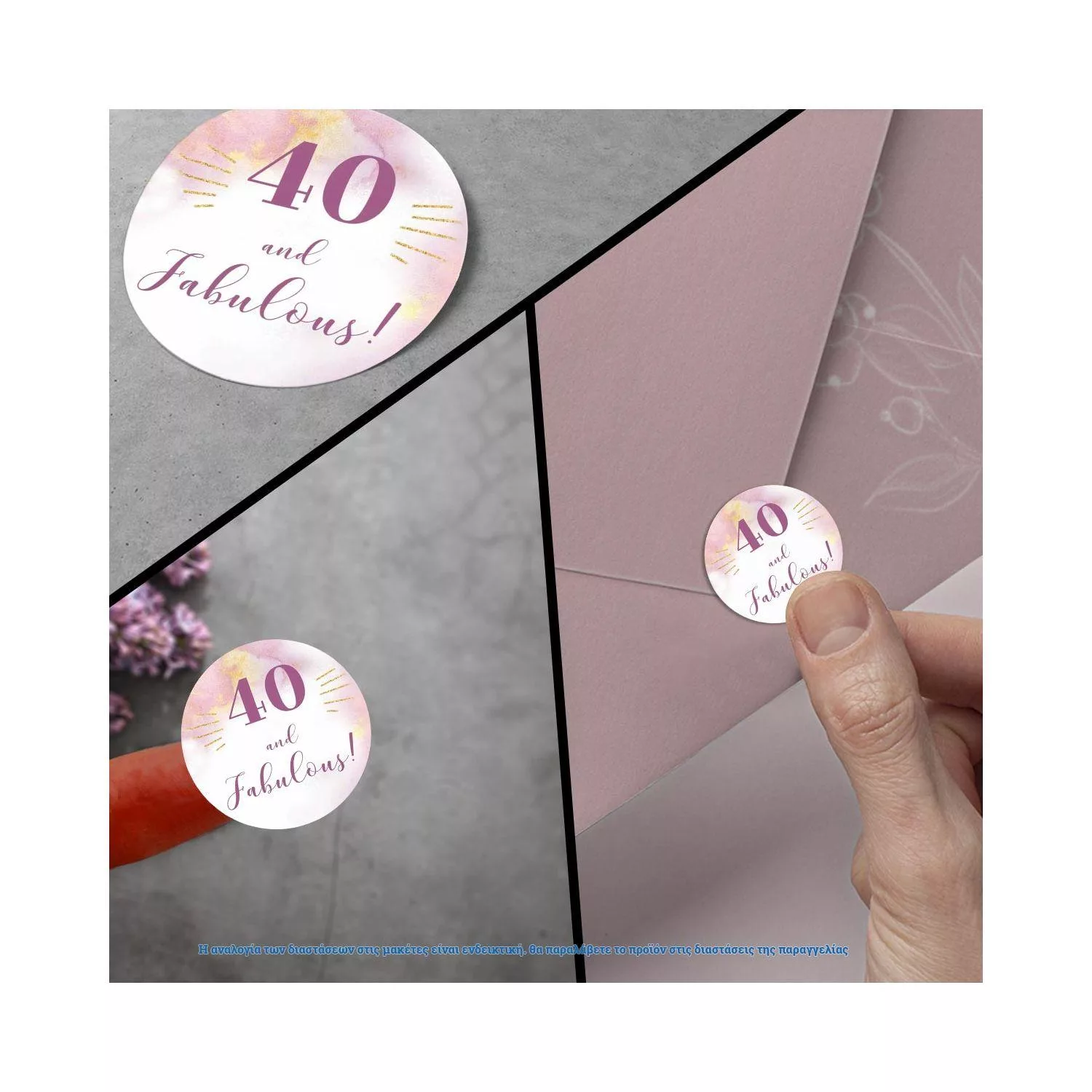 Αυτοκόλλητες ετικέτες αδιάβροχες 40 and fabulous, art 1