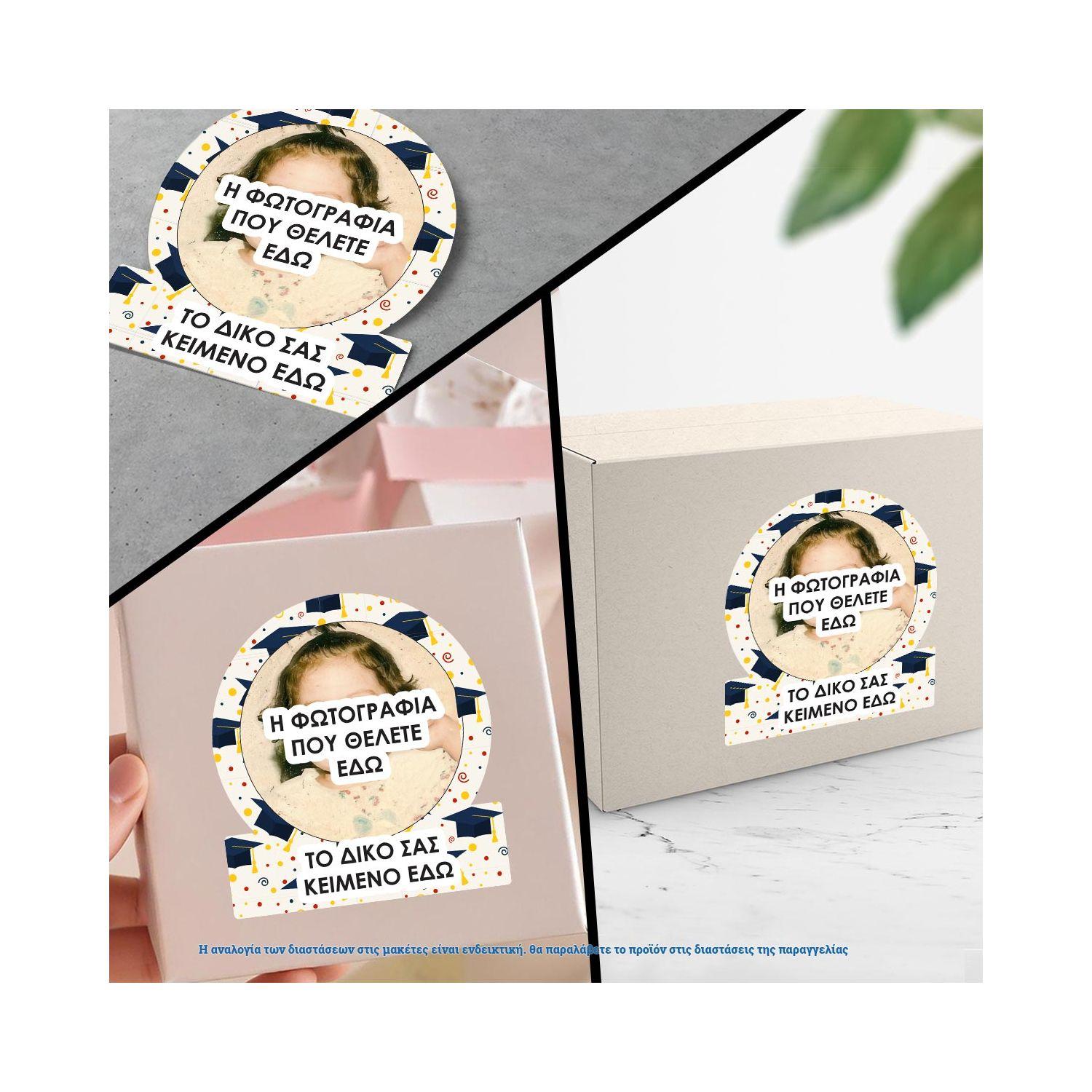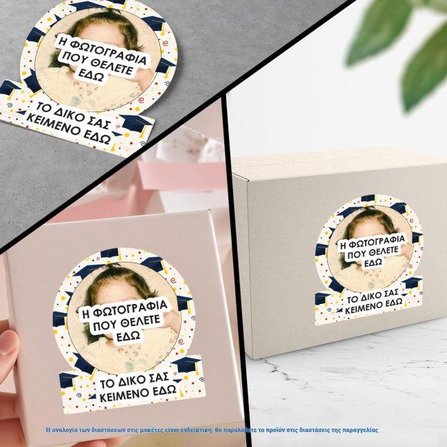 Αυτοκόλλητη ετικέτα αποφοίτησης με προσωποποιημένη φωτογραφία και κείμενο
