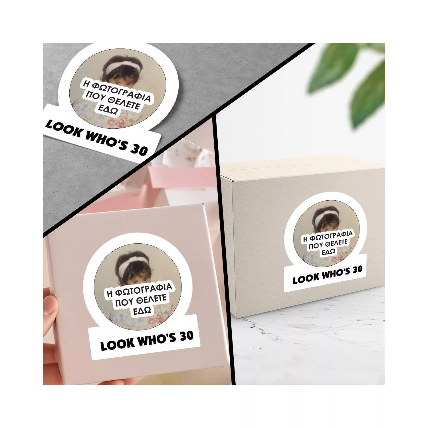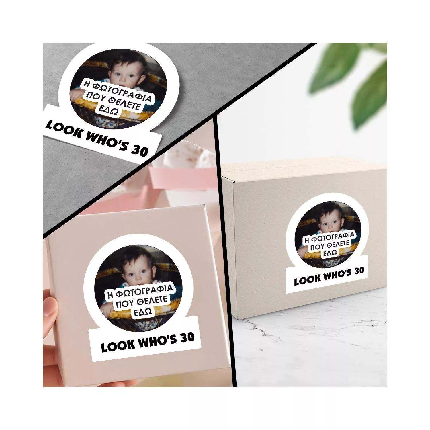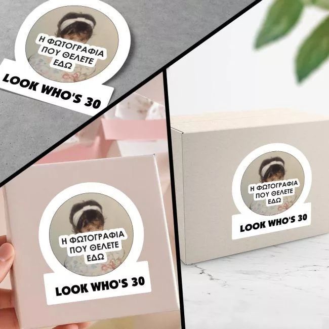 Αυτοκόλλητη ετικέτα γενεθλίων με προσωποποιημένη φωτογραφία και κείμενο