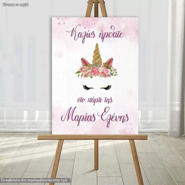 Πίνακας υποδοχής πάρτι γενεθλίων, Μονόκερος