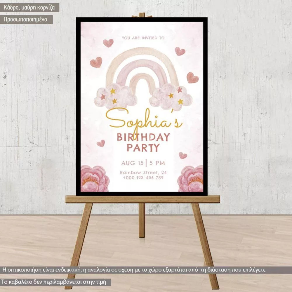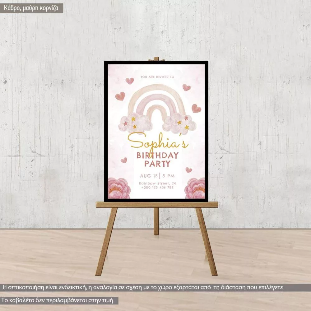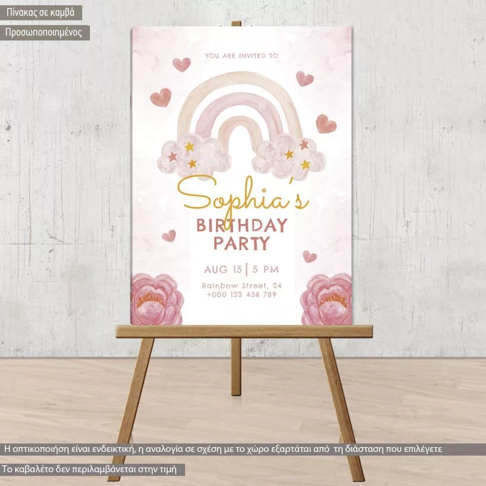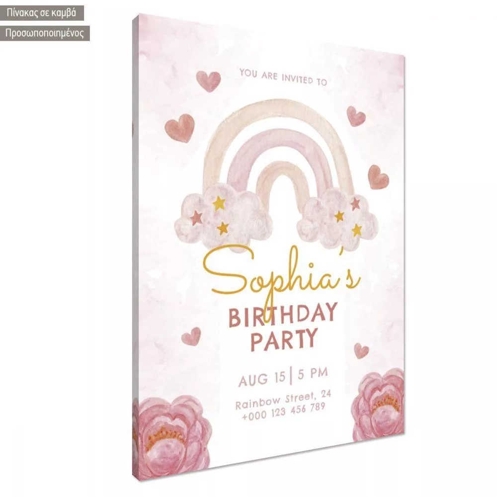 Πίνακας σε καμβά, Κάδρο για υποδοχή πάρτι γενεθλίων, προσωποποιημένο