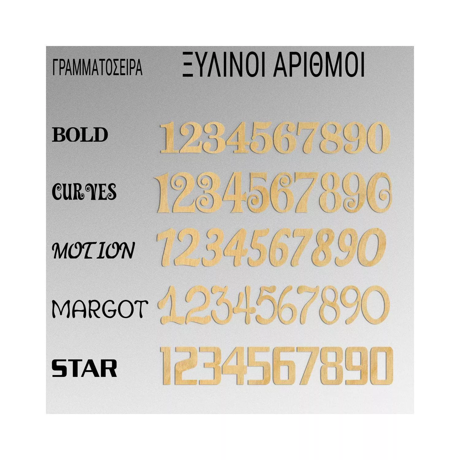 Ξύλινοι αριθμοί από ξύλο 3 mm, τέλεια κομμένη με laser.