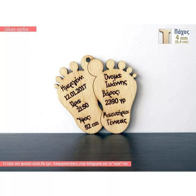 Ξύλινα πατουσάκια αναμνηστικό στοιχεία γέννησης