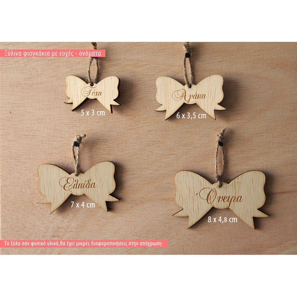 Ξύλινο γούρι, φιογκάκι με ευχές