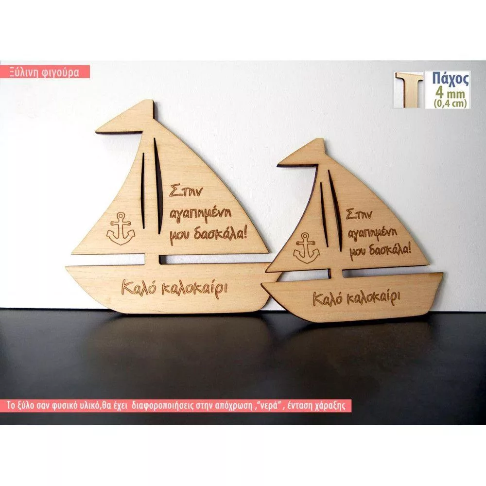 Ξύλινο καραβάκι αναμνηστικό με αφιέρωση