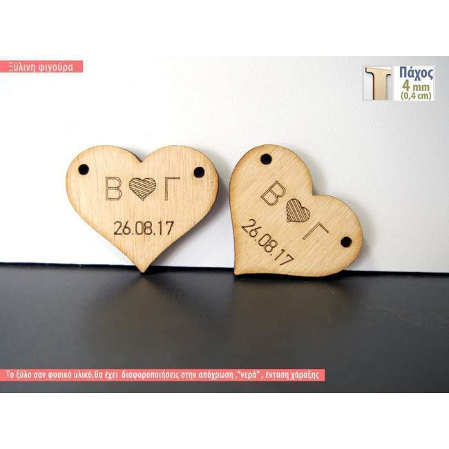 Ξύλινη καρδιά από ξύλο 3-4 mm , κομμένη και χαραγμένη με laser.