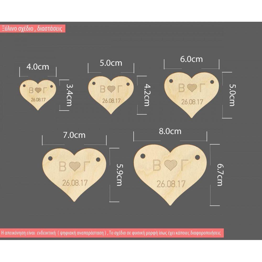 Ξύλινη καρδιά κρεμαστή με αρχικά και ημερομηνία