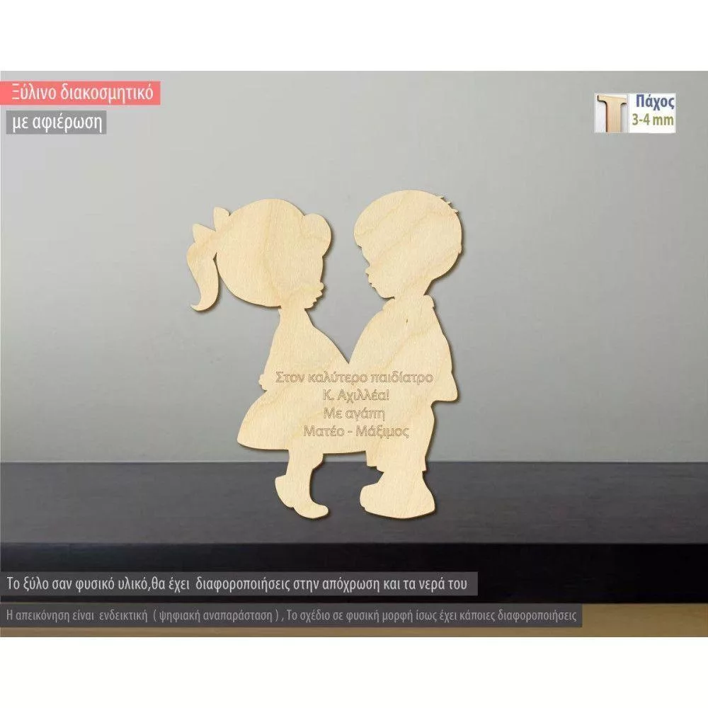 Ξύλινο αναμνηστικό κοριτσάκι και αγοράκι με αφιέρωση, διακοσμητική φιγούρα