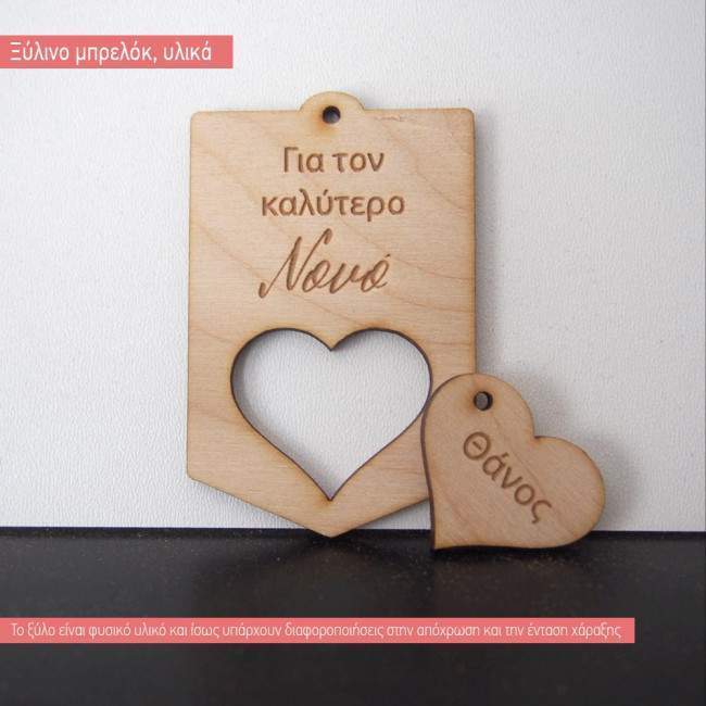 Ξύλινο μπρελόκ με αφιέρωση και όνομα.