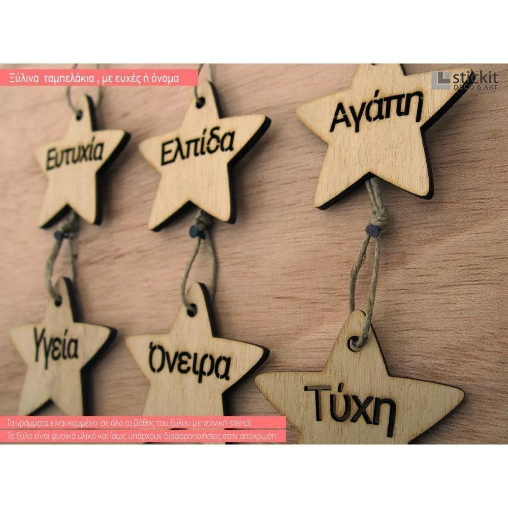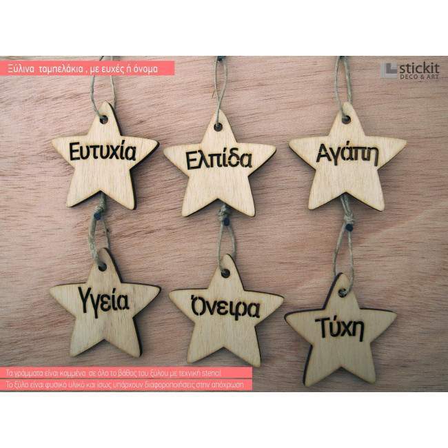 Ξύλινο ταμπελάκι αστεράκι με ευχές