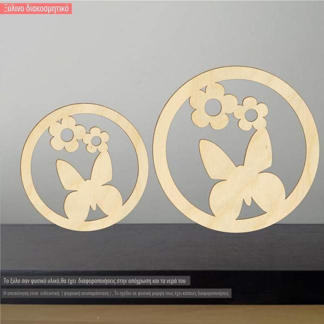 Ξύλινος κύκλος με λουλούδια και πεταλούδες