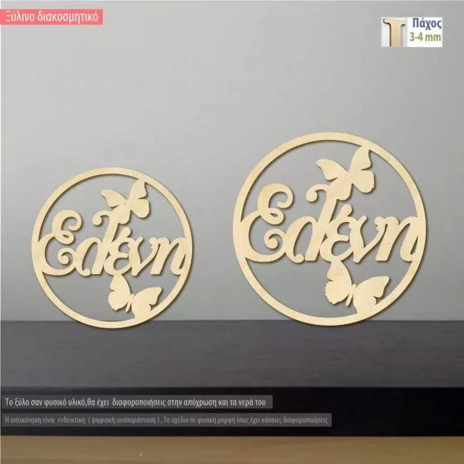 Ξύλινος κύκλος με όνομα και πεταλούδες